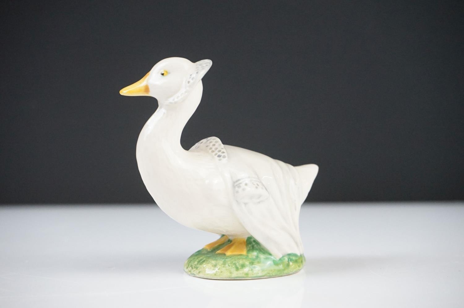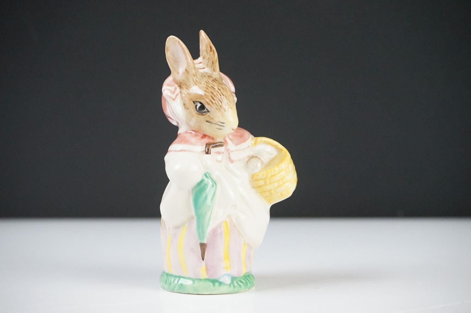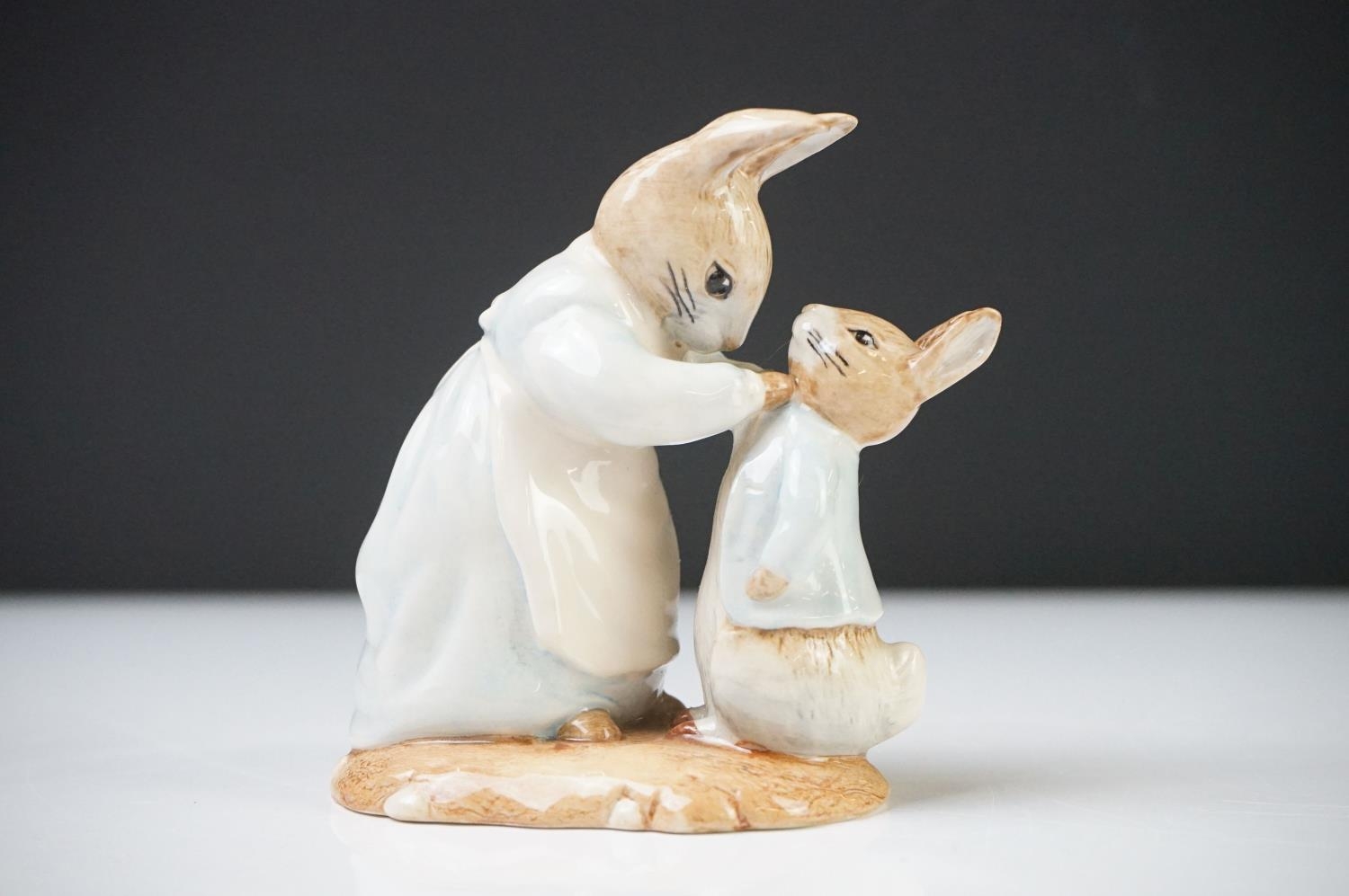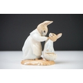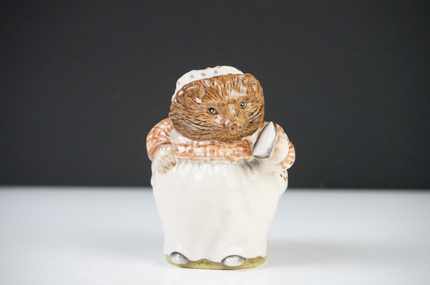 Five Beatrix Potter Figures including Beswick Miss Tiggy-winkle, Miss Moppet, Rebeccah Puiddle-duck and Mrs Rabbit plus Royal Albert Mrs Rabbit and Peter