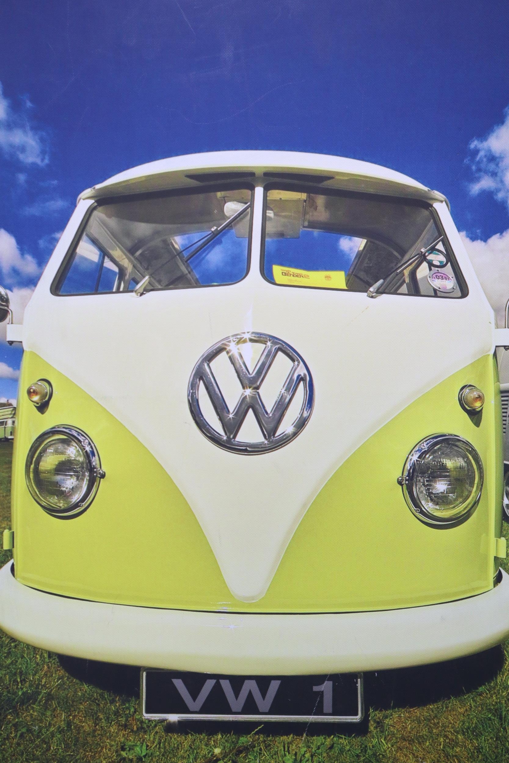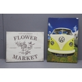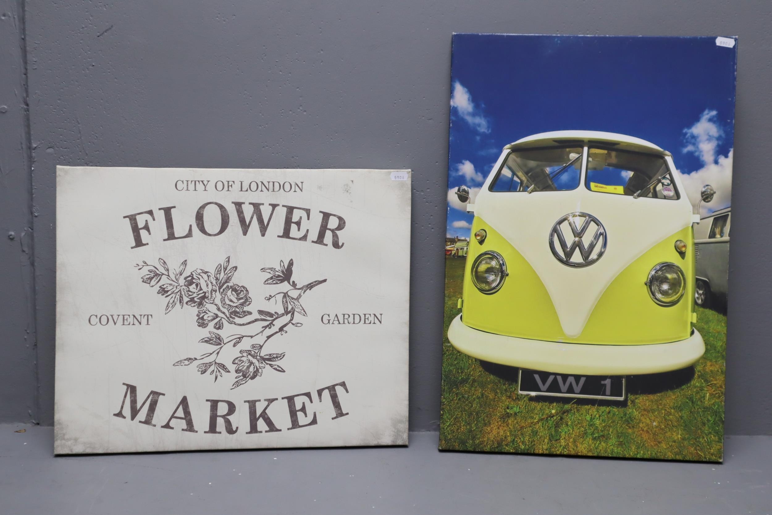 Two Canvas on Frame Pictures to include Vintage VW Camper Van and London Covent Garden Flower Market largest approx 23"x 17"