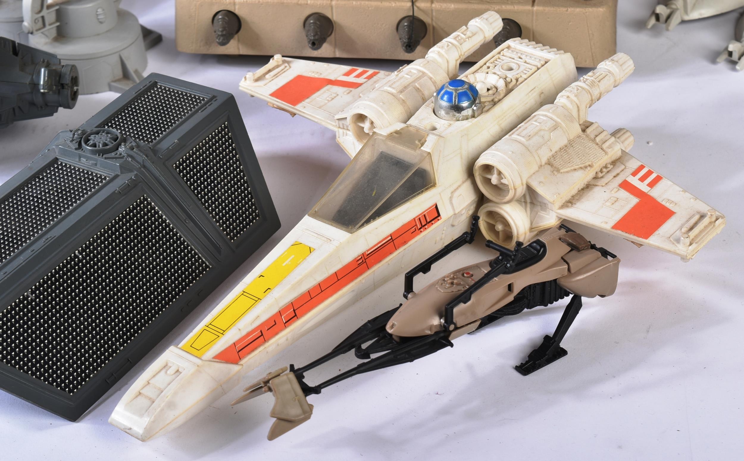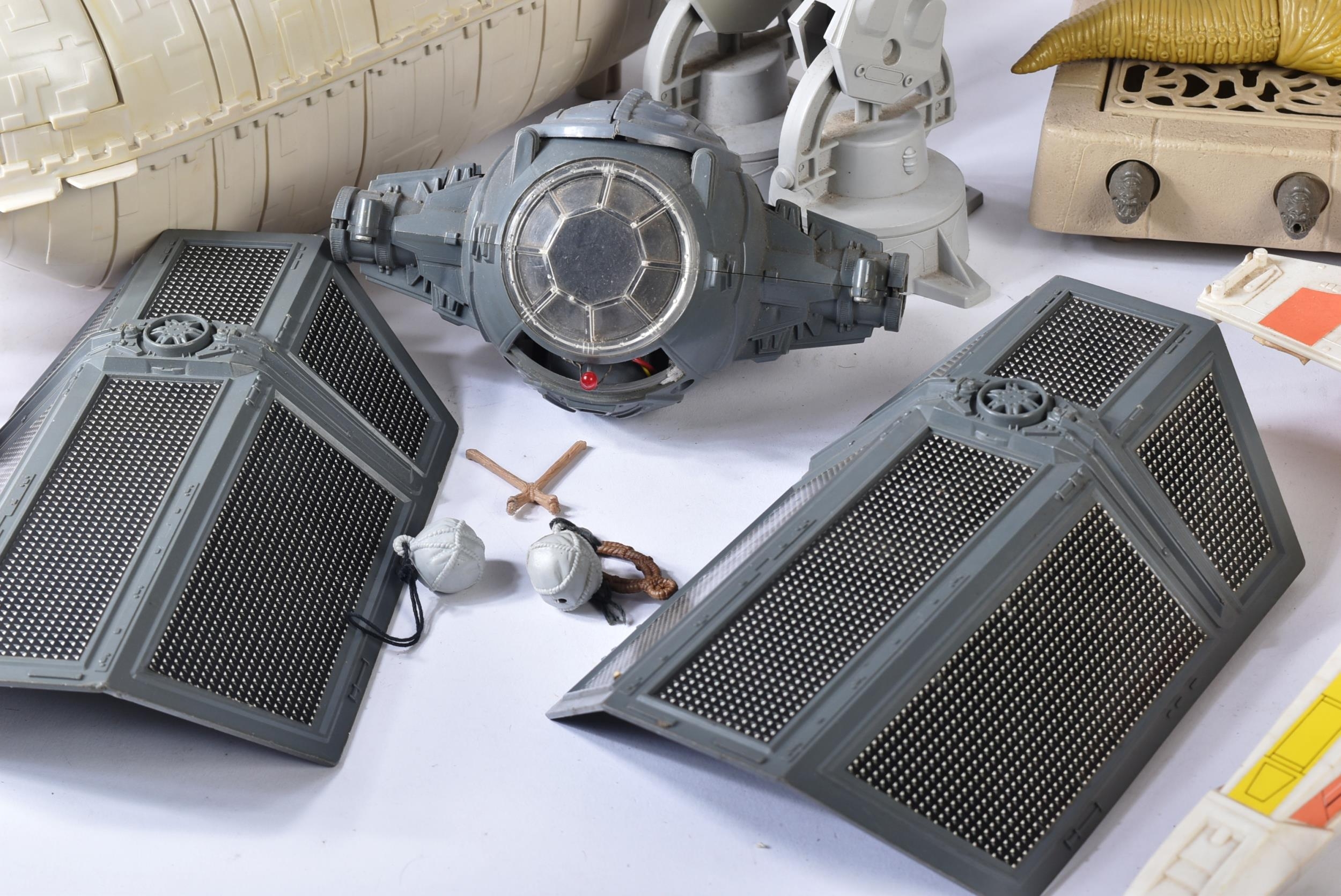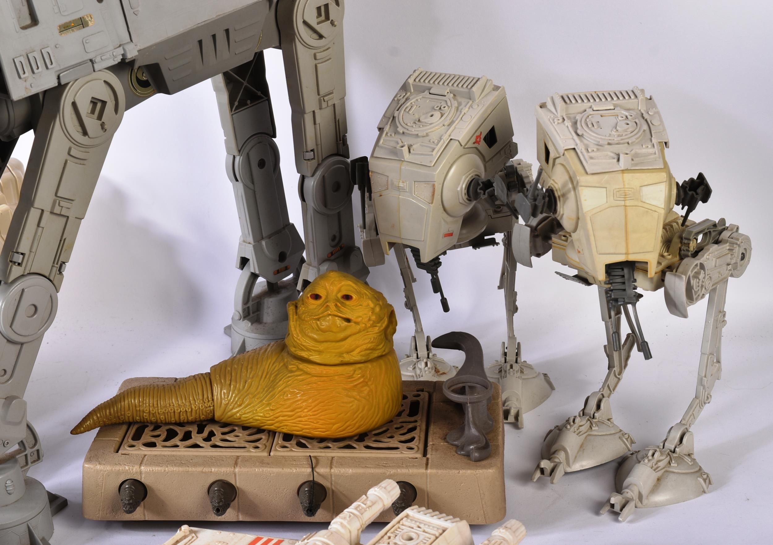 Star Wars - a large collection of assorted vintage Kenner / Palitoy made action figure playsets. Includes: AT AT, Rebel Transport, TIE Fighter, Jabba The Hutt Playset, X Wing Fighter, Scout Walker, minirigs etc. All various degrees of completeness (none 100% complete). Many smaller accessories still present. AF.