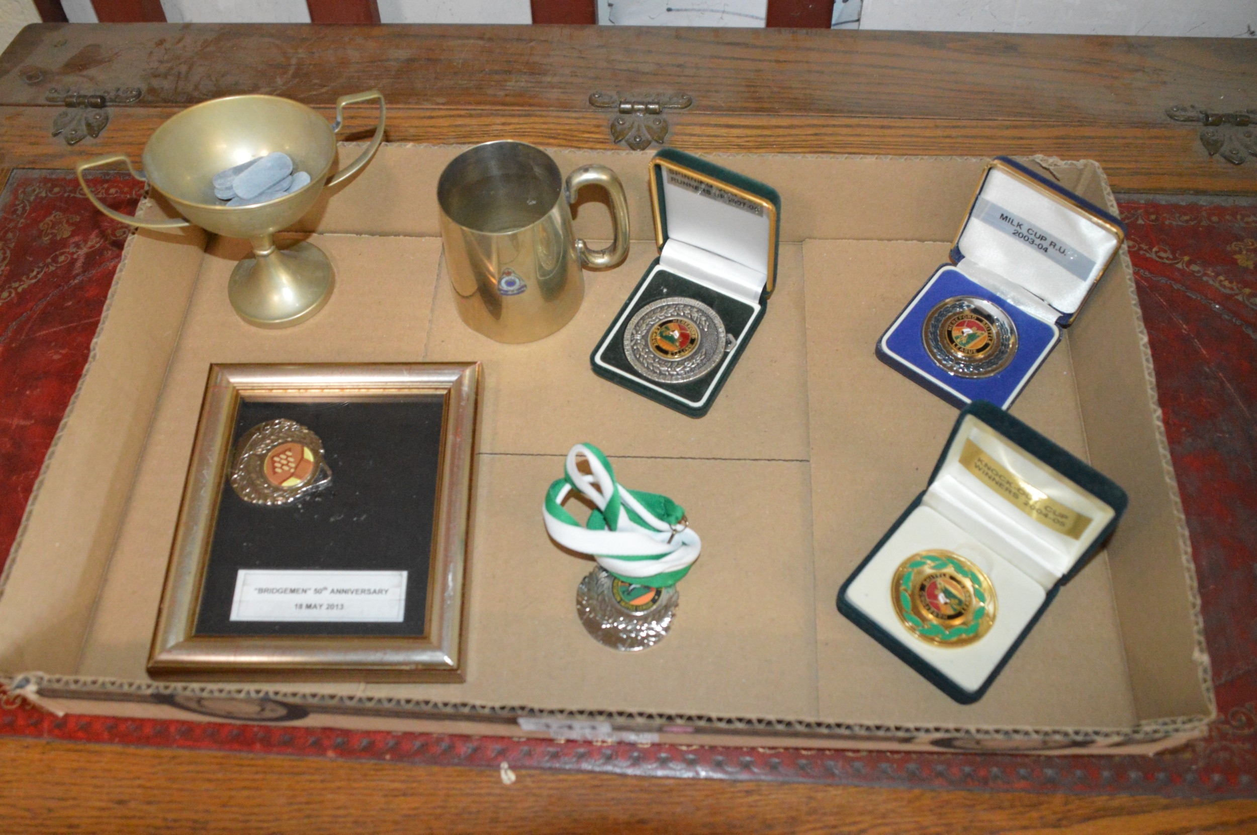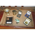 box of medals & trophy etc.