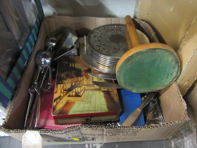 BOX OF KITCHEN WARE INCLUDING CUTLERY ETC