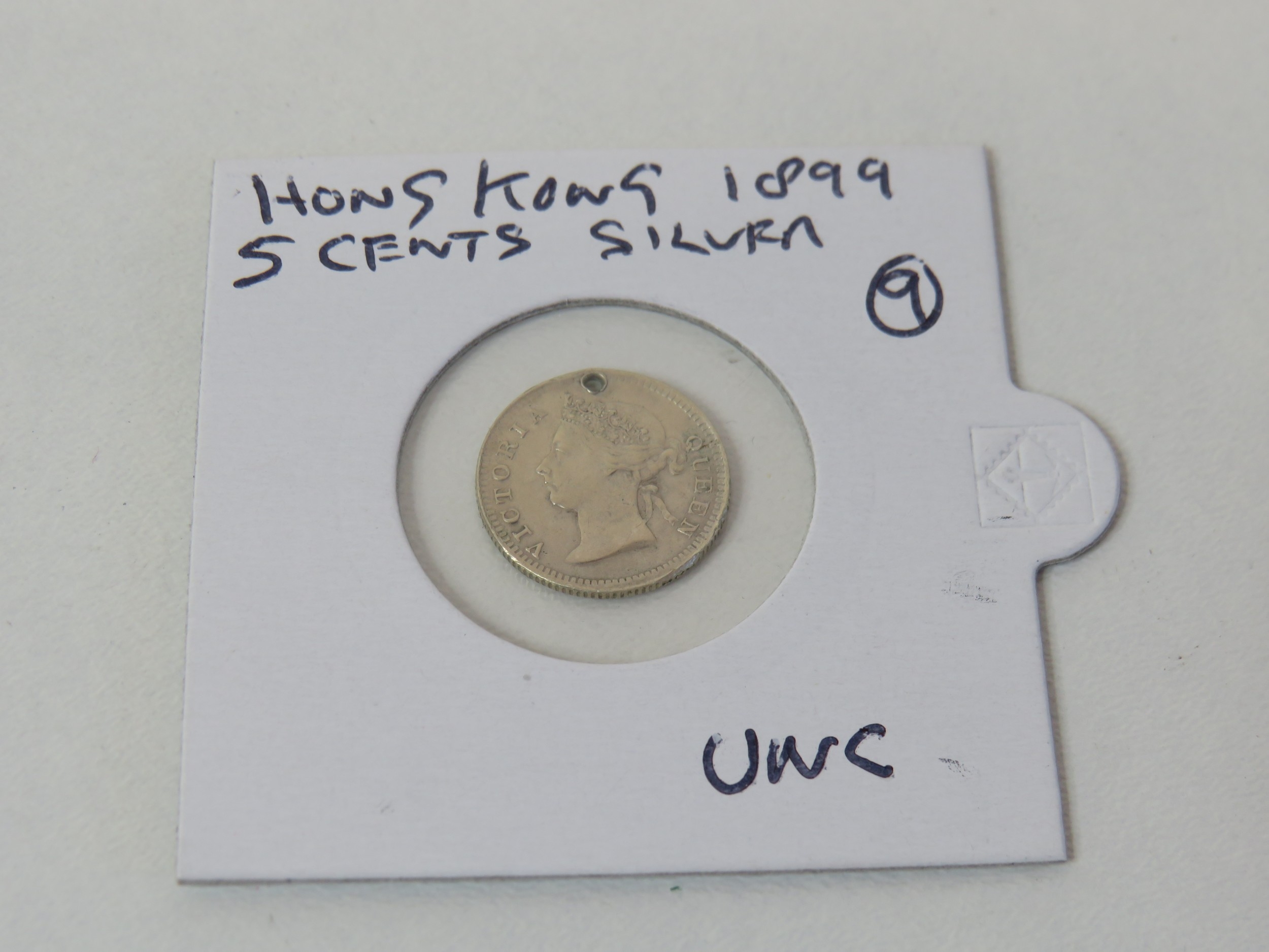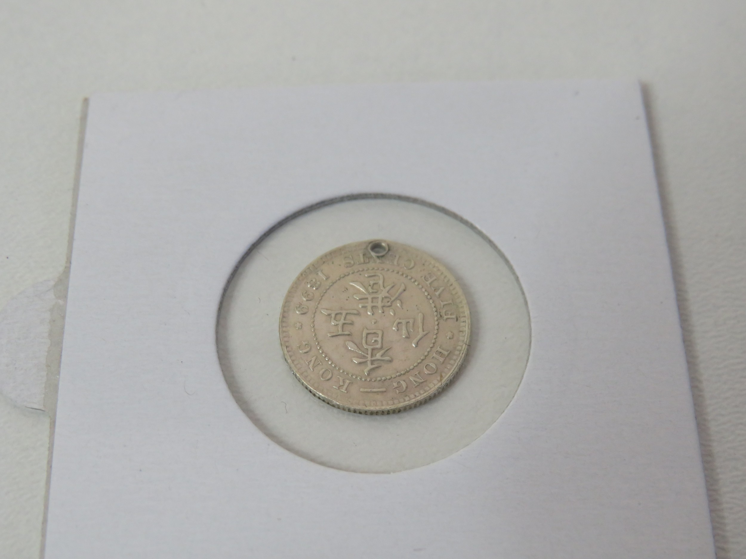 Hong Kong 1899 silver 5 cents 80% uncirculated with Hola - Chinese Characters.