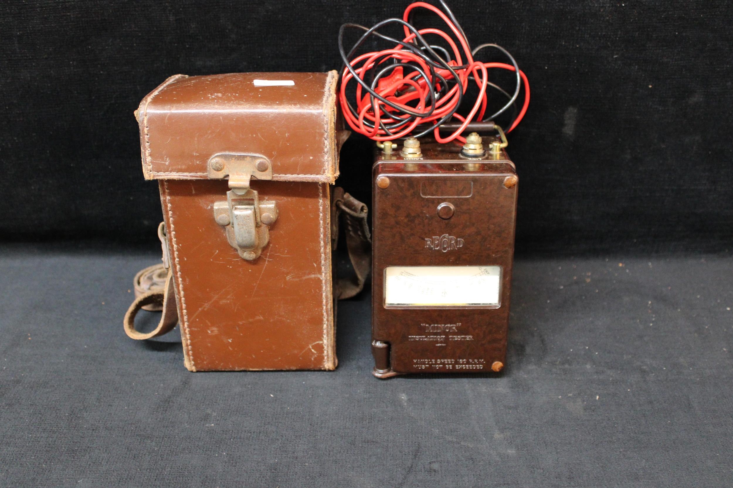 A Record Minor insulation tester with leather case