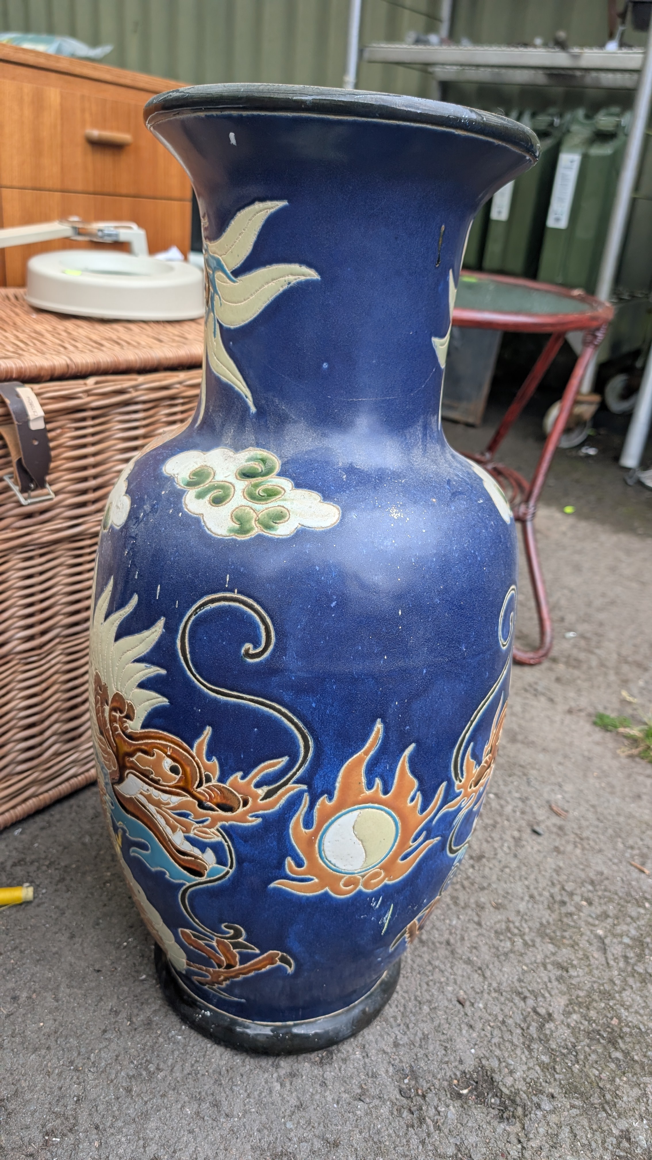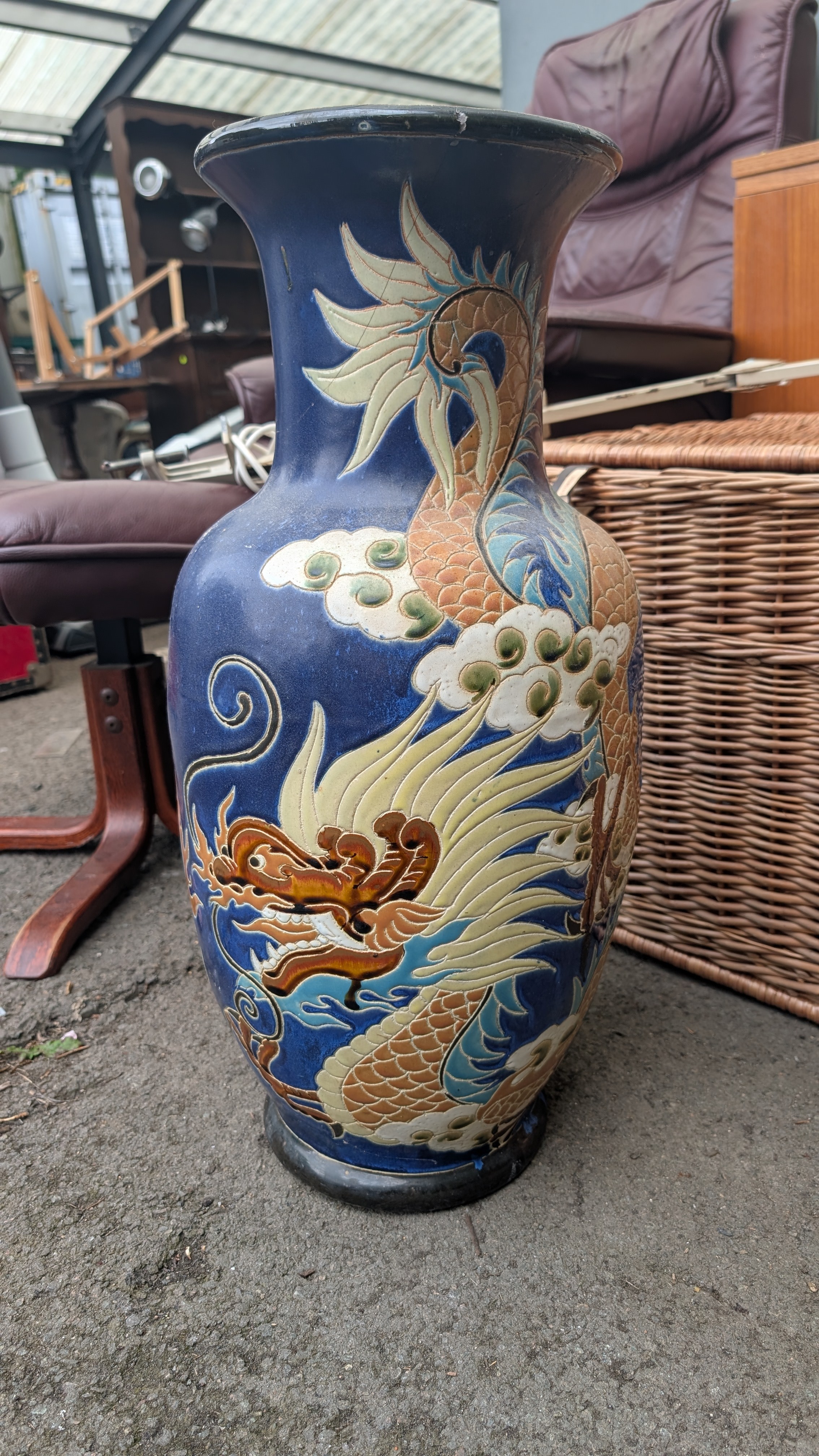 Oriental-style Chinese vase depicting 5-toed dragon. H66cm.