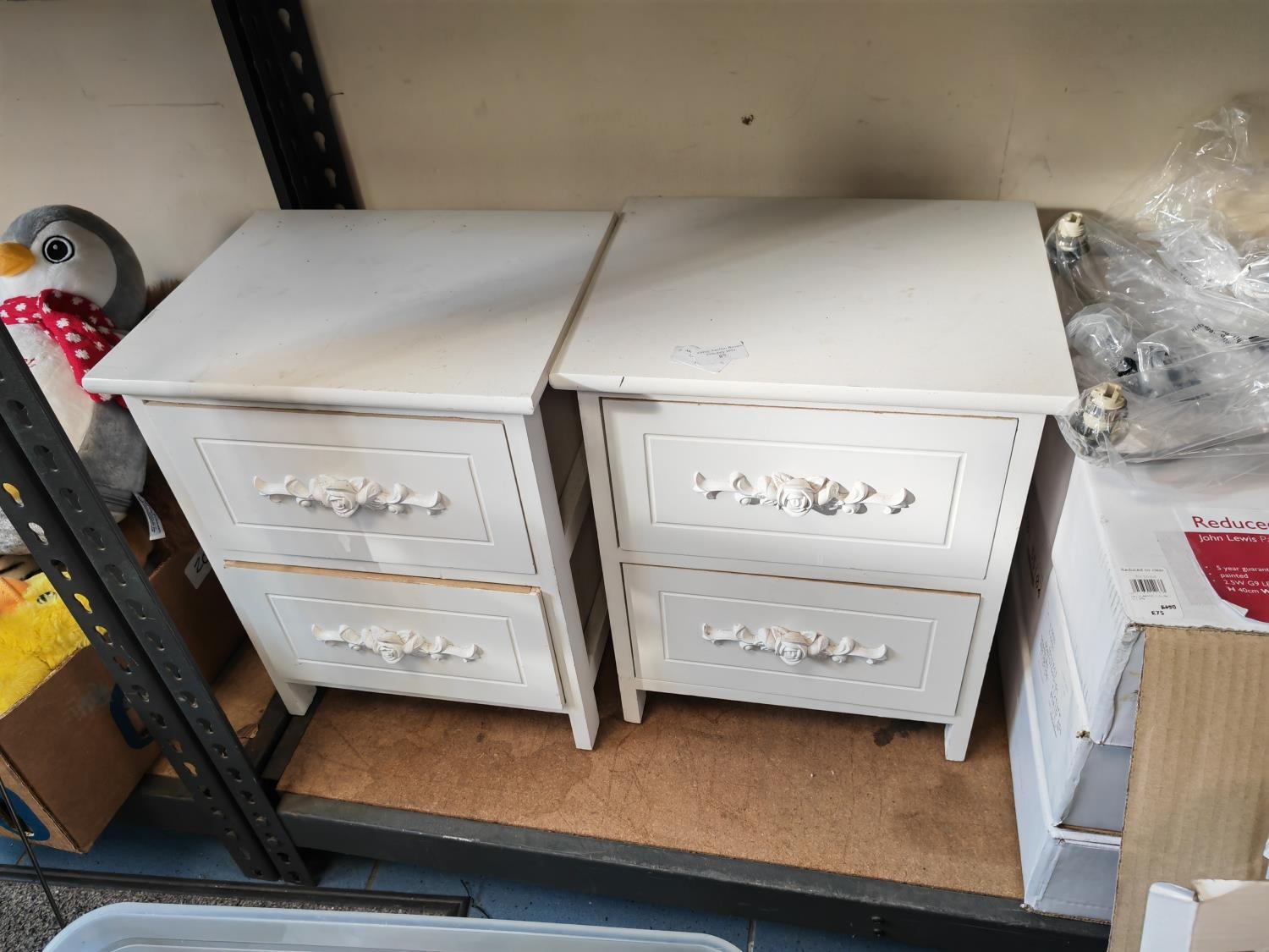 Pair Of White Bedside Cabinets With Rose Petal Door Handles