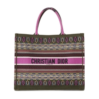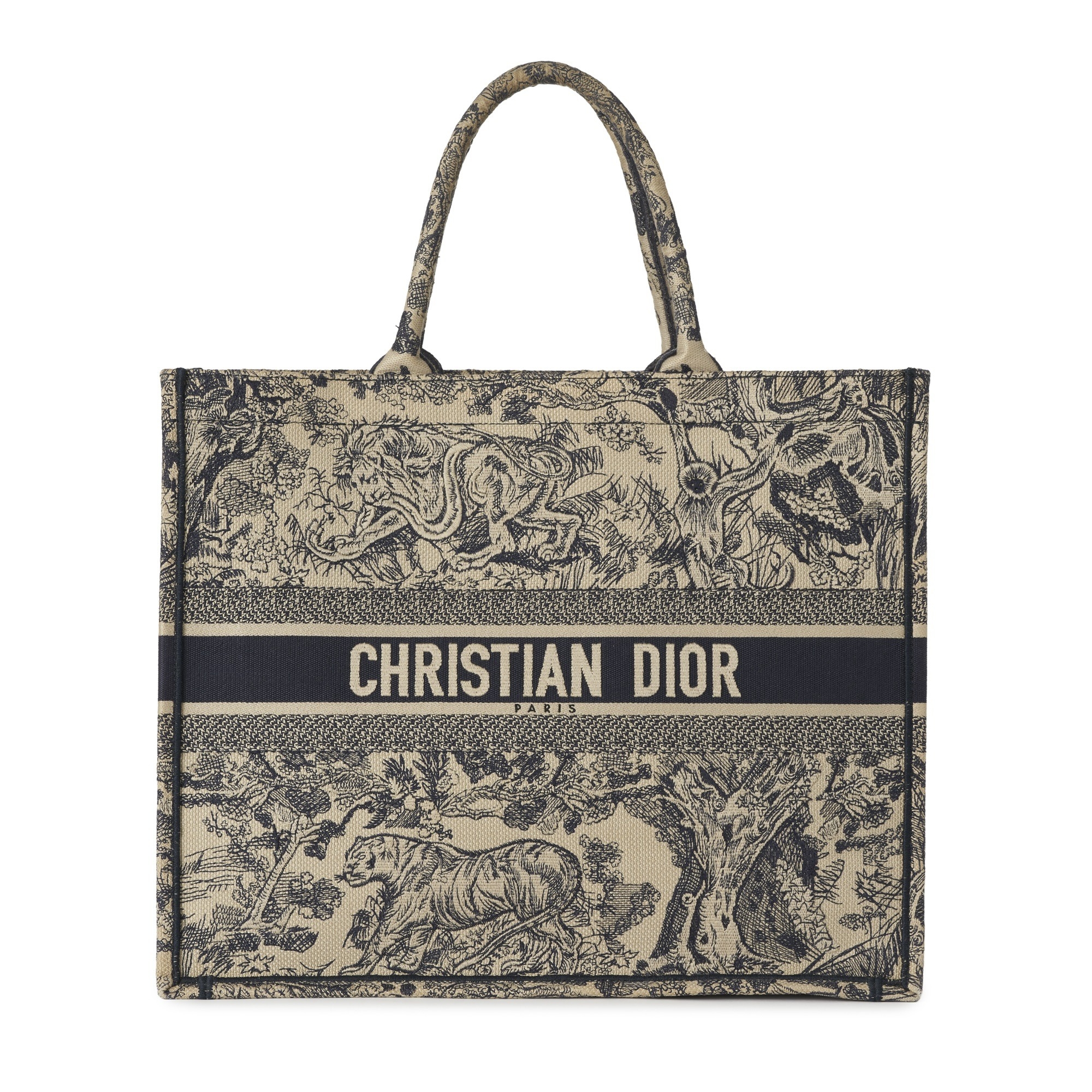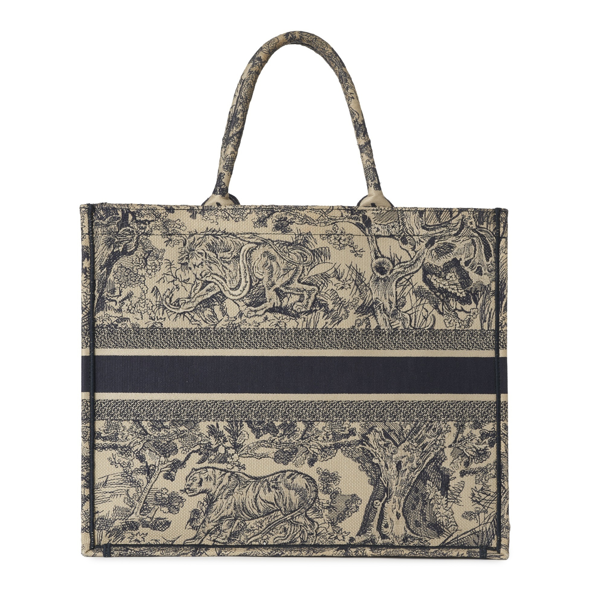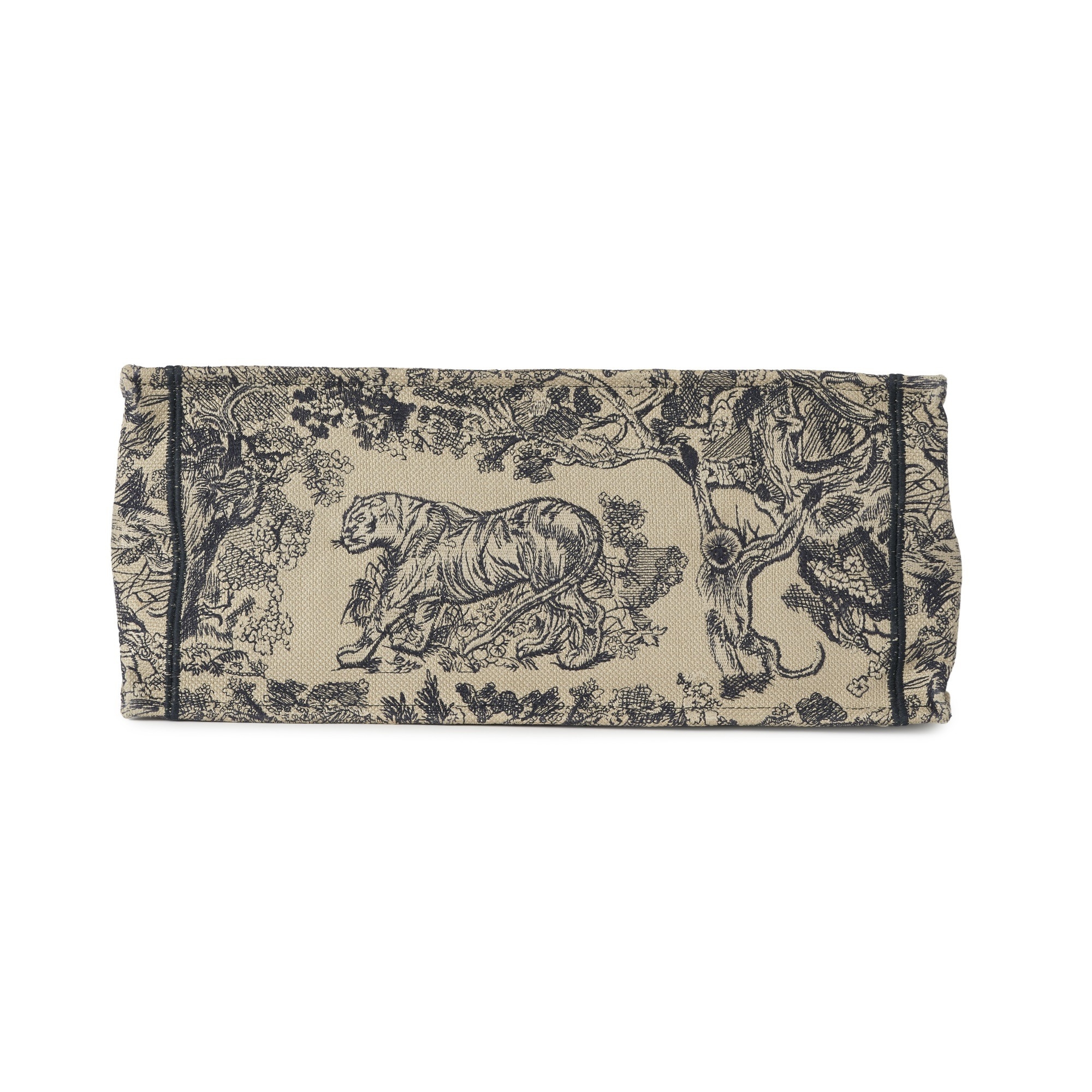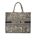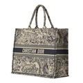 Christian Dior, a large Book Tote, featuring an ecru and blue Toile de Jouy embroidered motif, with two looping handles and an open top, measuring 18.5 by 35 by 42cm