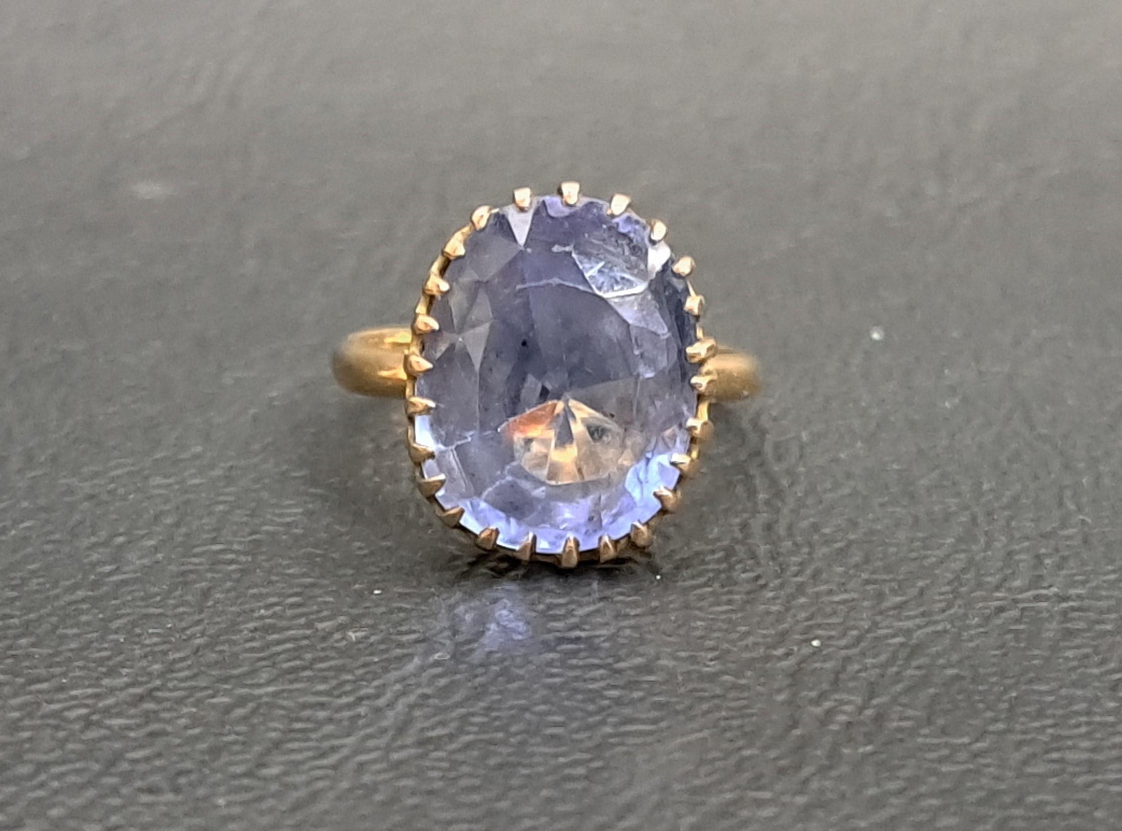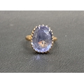 the oval cut blue topaz approximately 3.2cts, on eighteen carat gold shank, ring size G-H