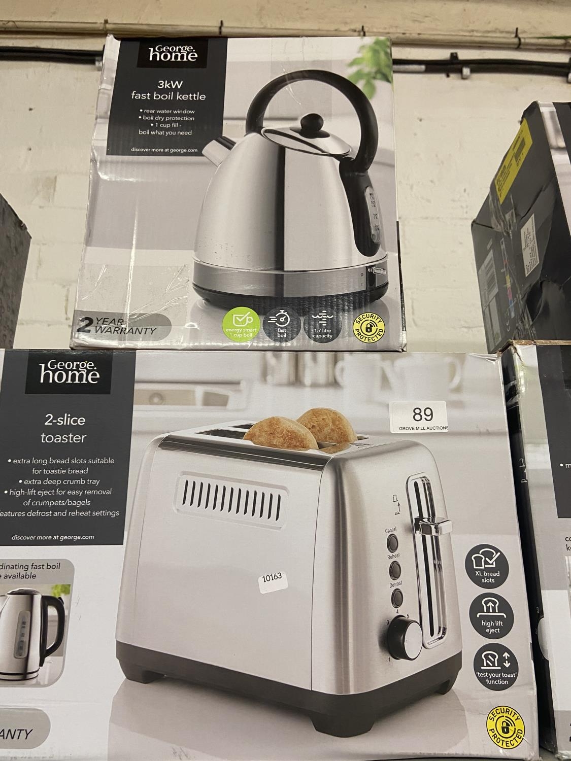 BOXED SILVER COLOURED TOASTER & BOXED SILVER COLOURED KETTLE (AS NEW) (A/F)