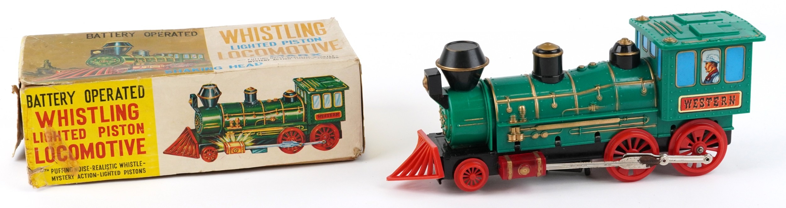 A Marx whistling lighted piston locomotive battery operated ...