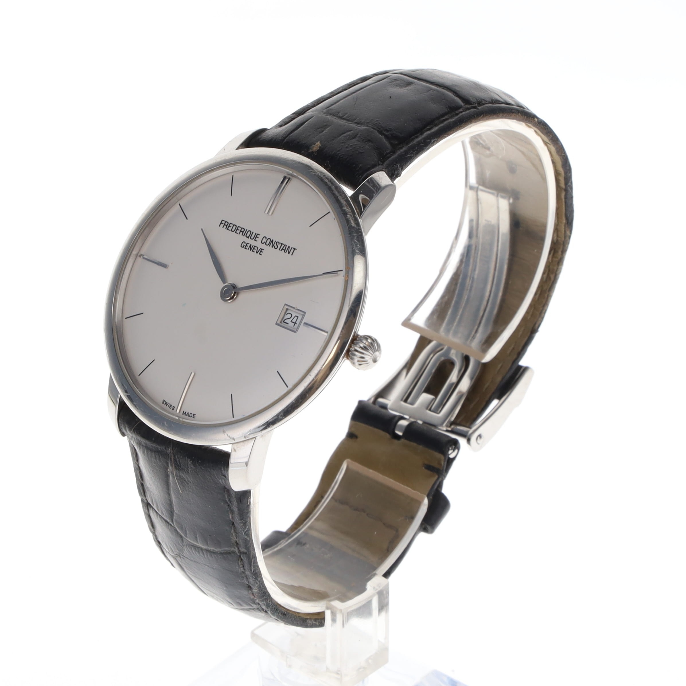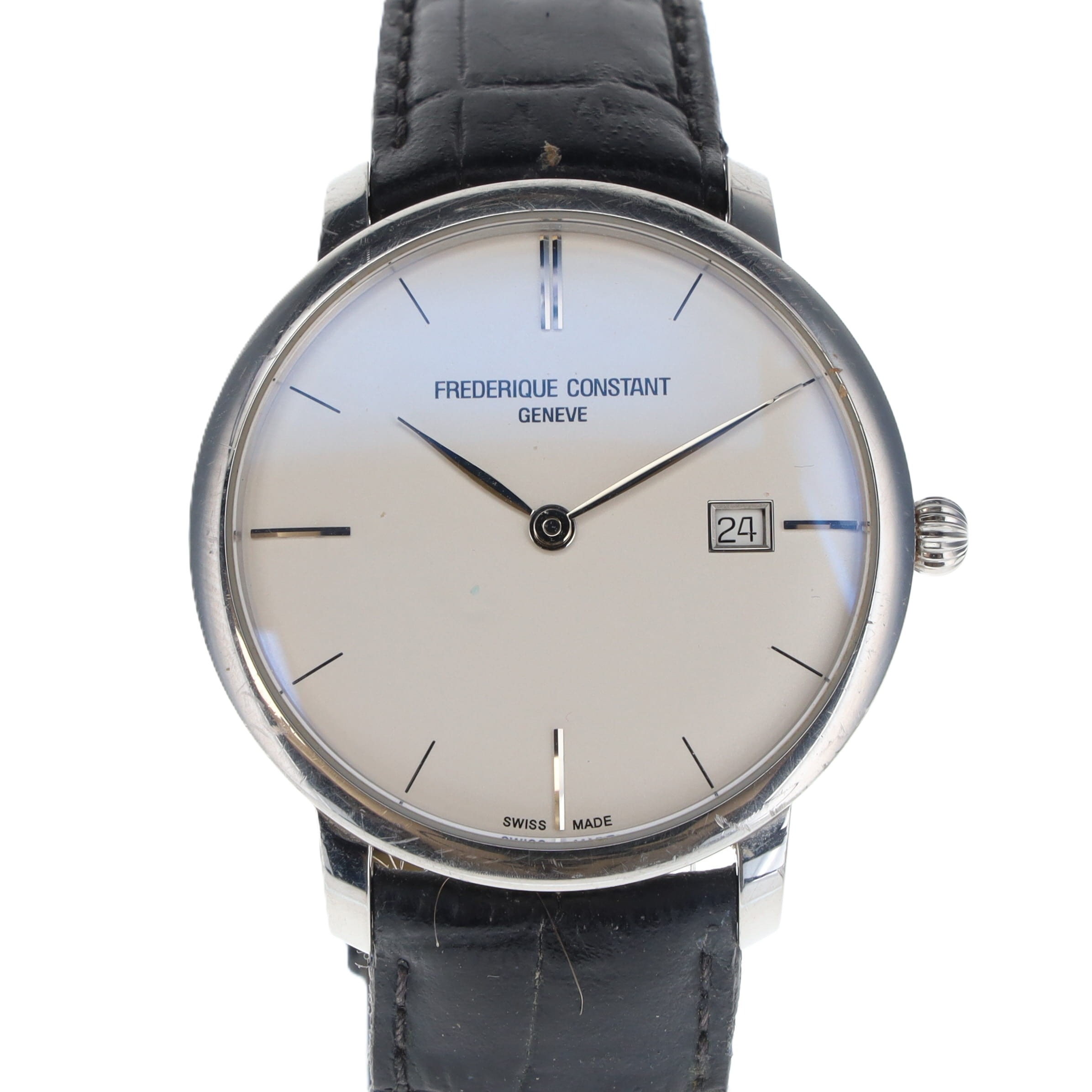 Frederique Constant - Slimline Watch Sellita Cal. SW300-1 Automatic movement. Stainless Steel case and Leather strap. Sapphire crystal is in good condition. Watch is running at the time of listing Strap is very worn and requires conditioning or replacement