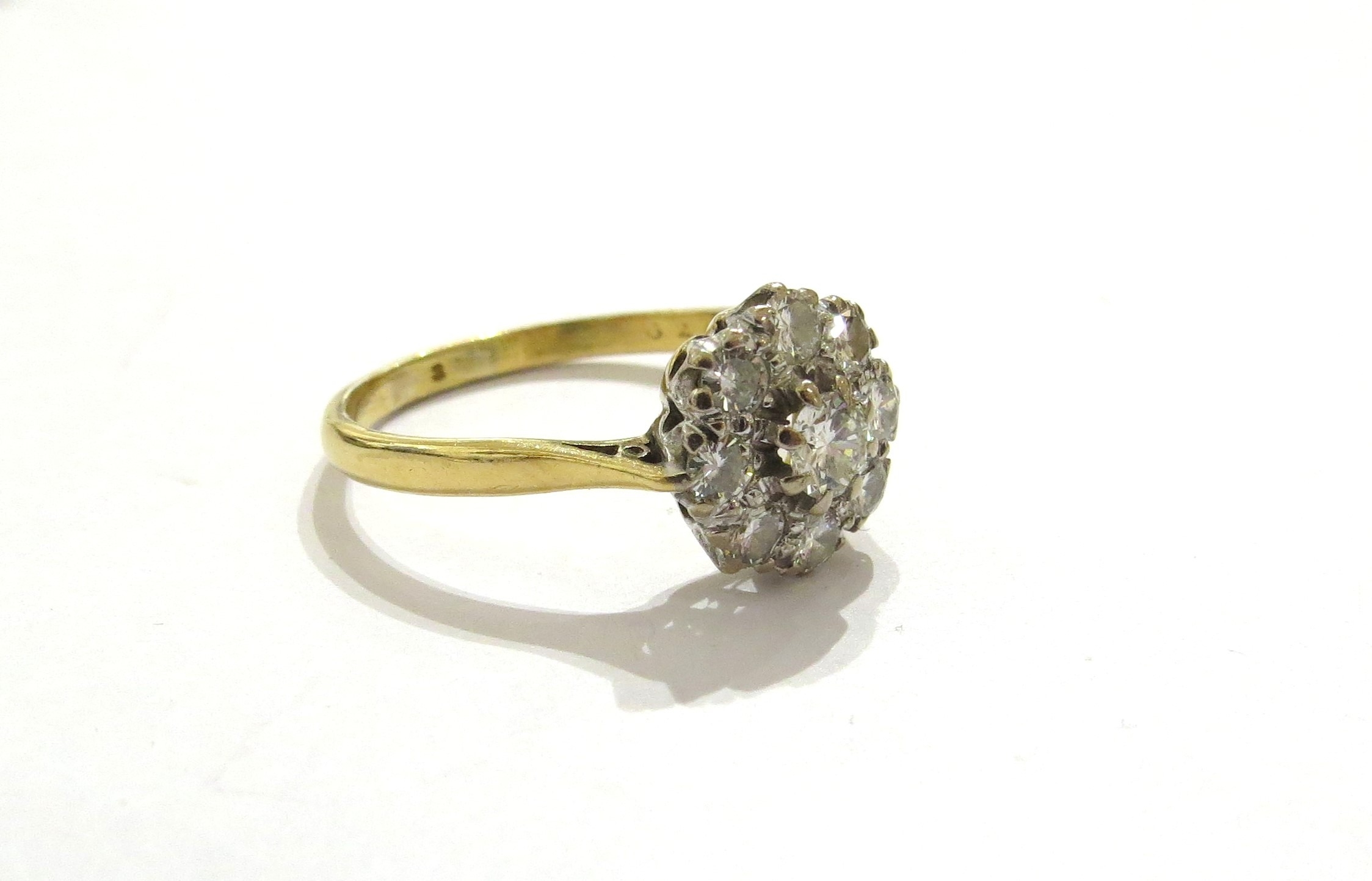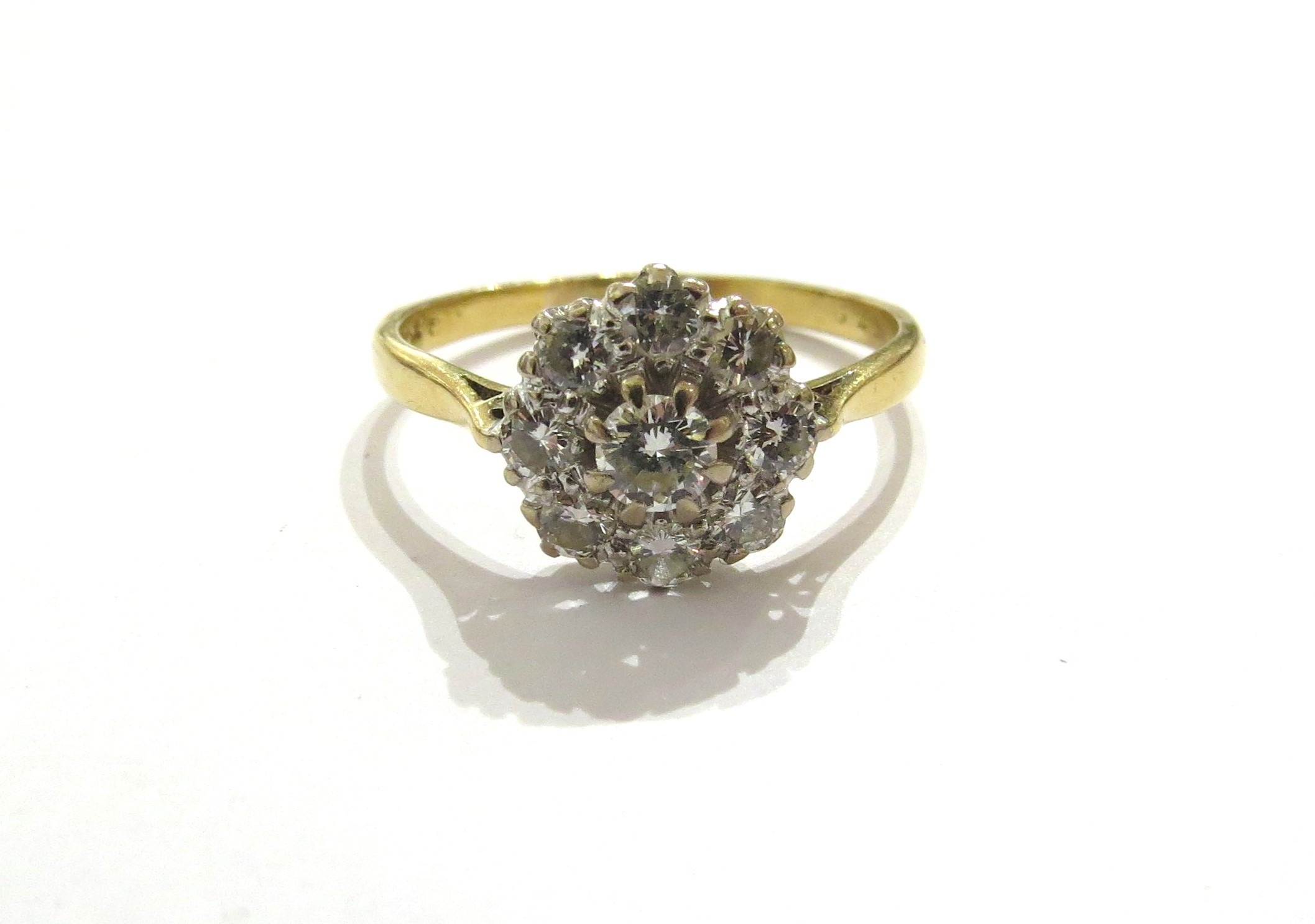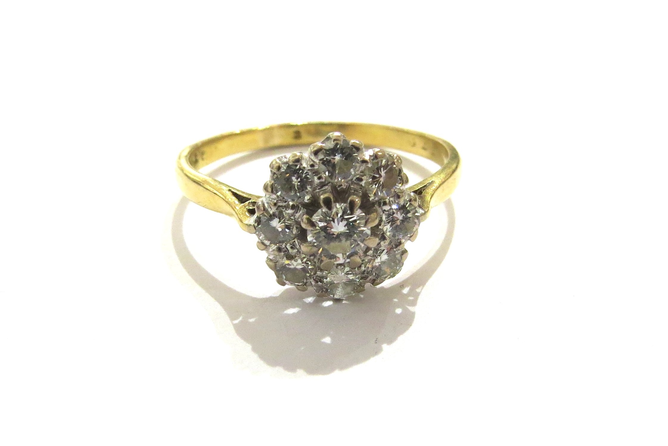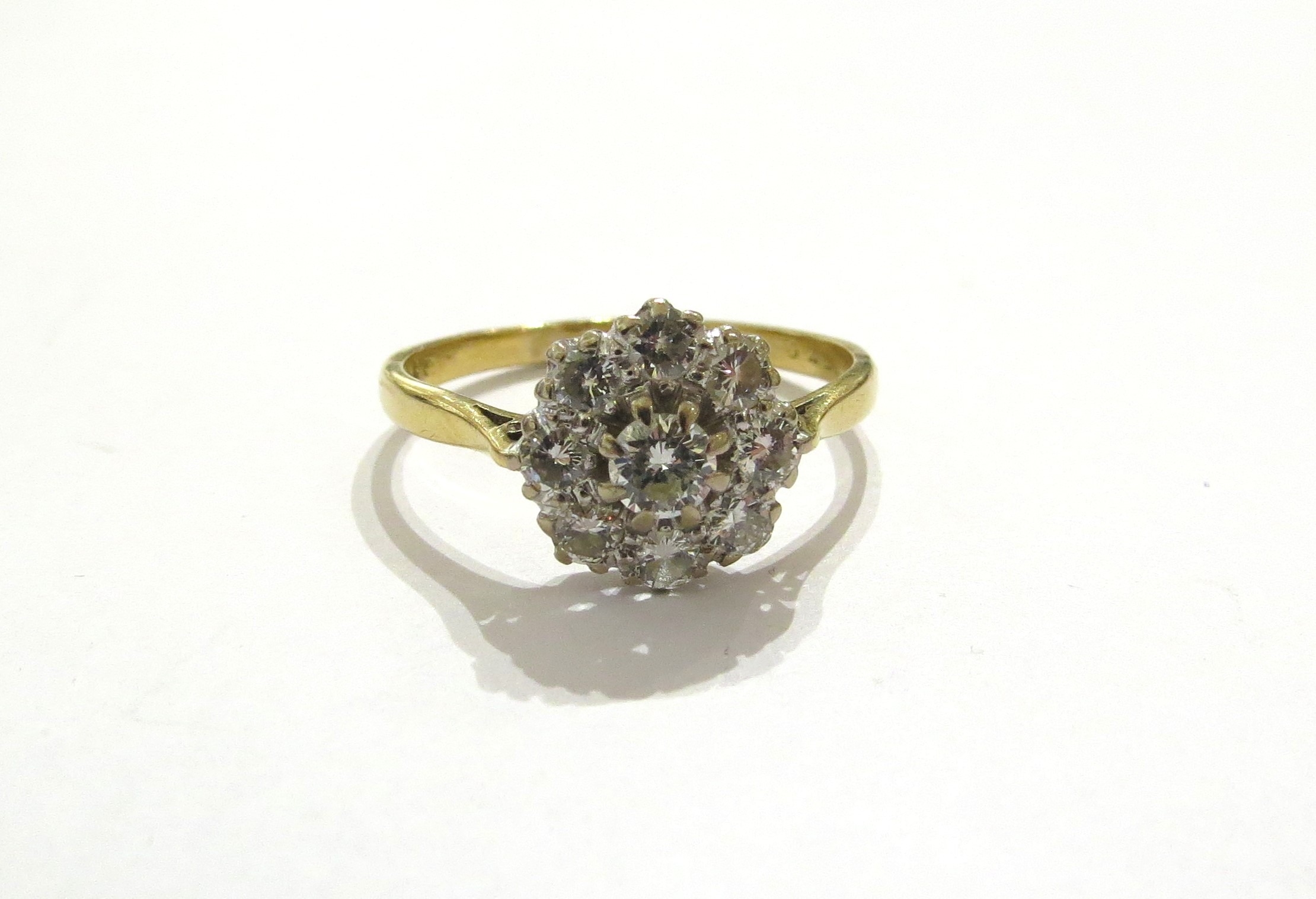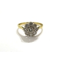 An 18ct gold diamond daisy cluster ring, marks rubbed. Size V, 3.8g