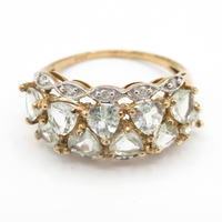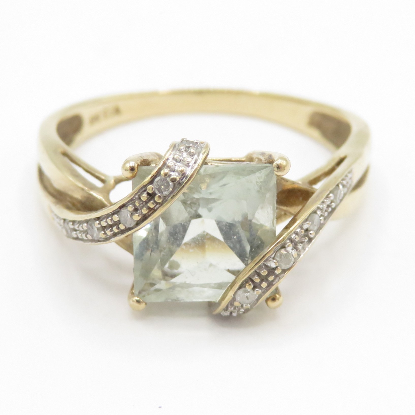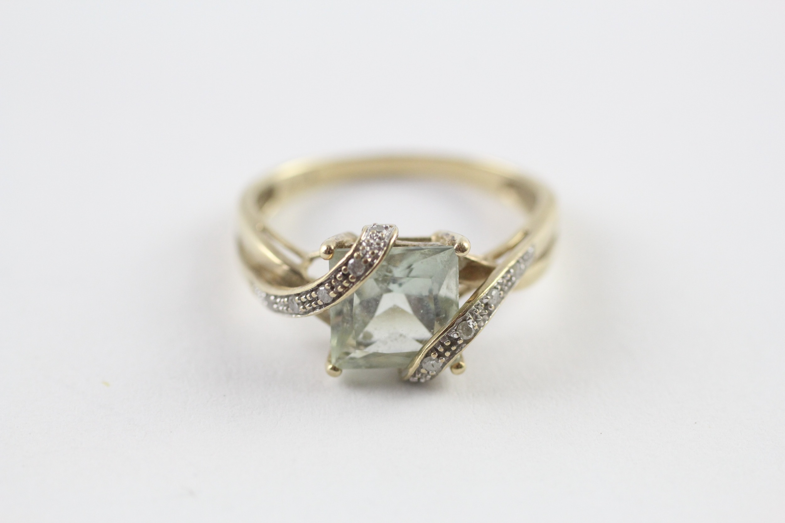 9ct gold praisolite & diamond dress ring (2.8g) Size Q