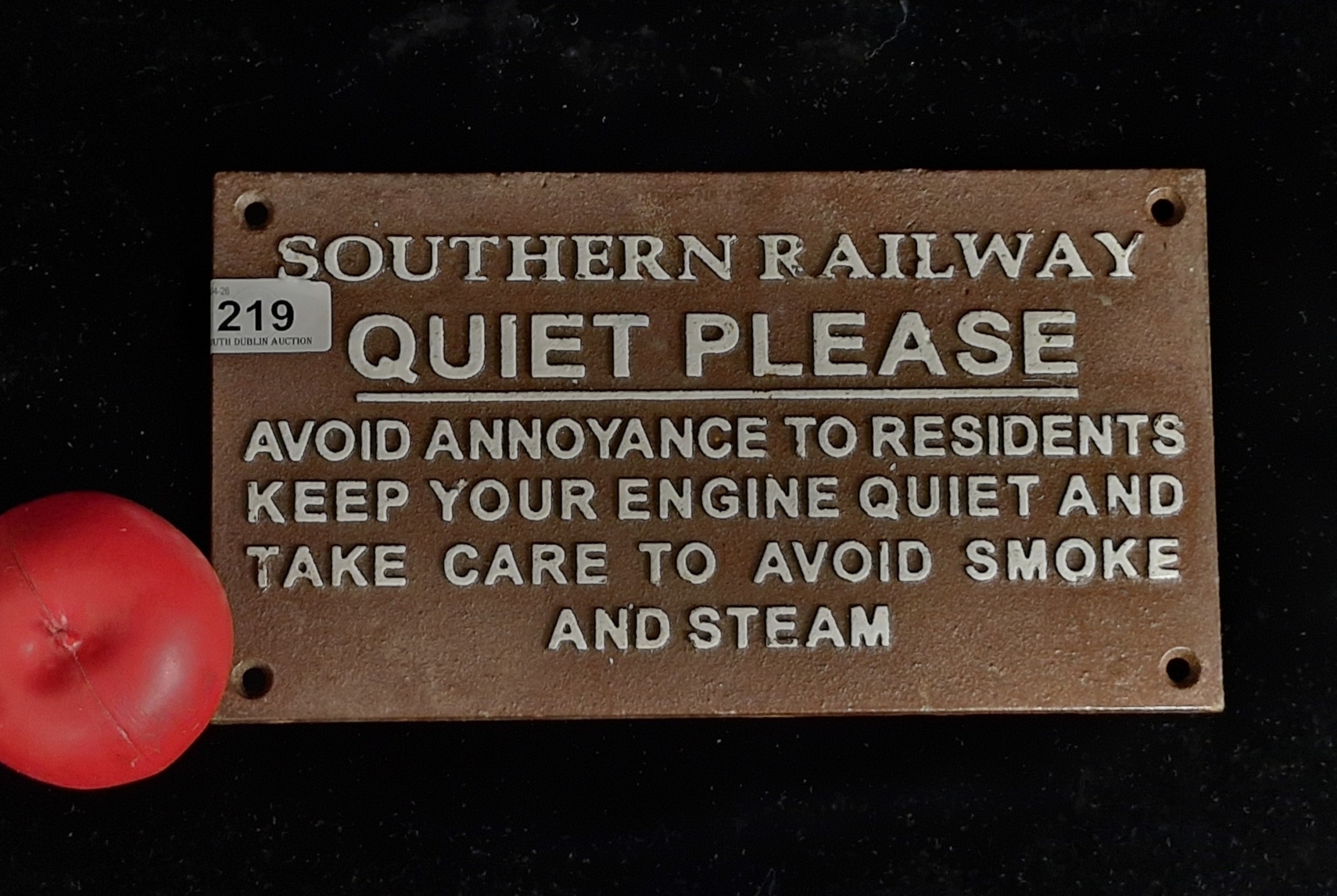 A heavy cast metal railway themed wall plaque.