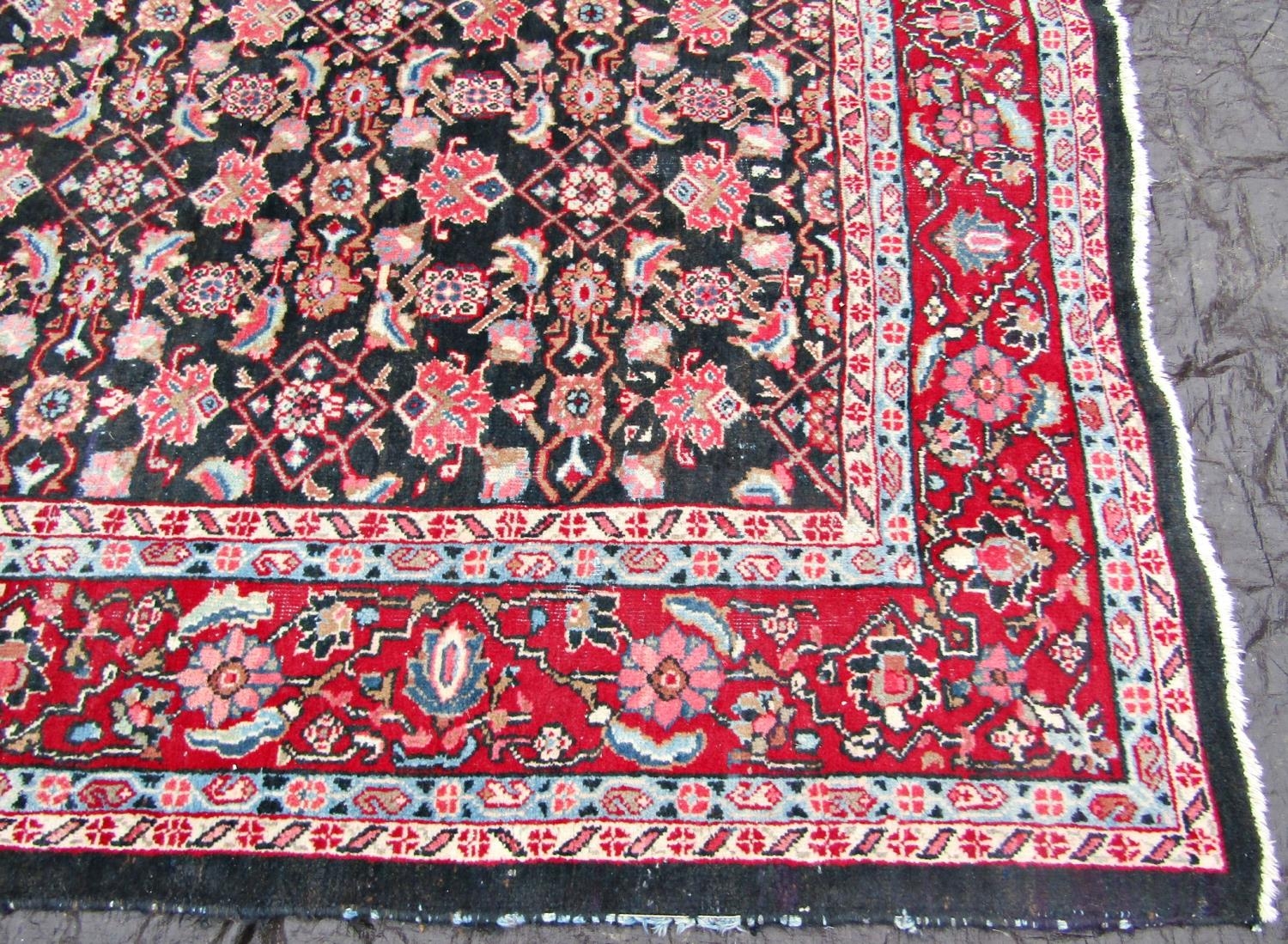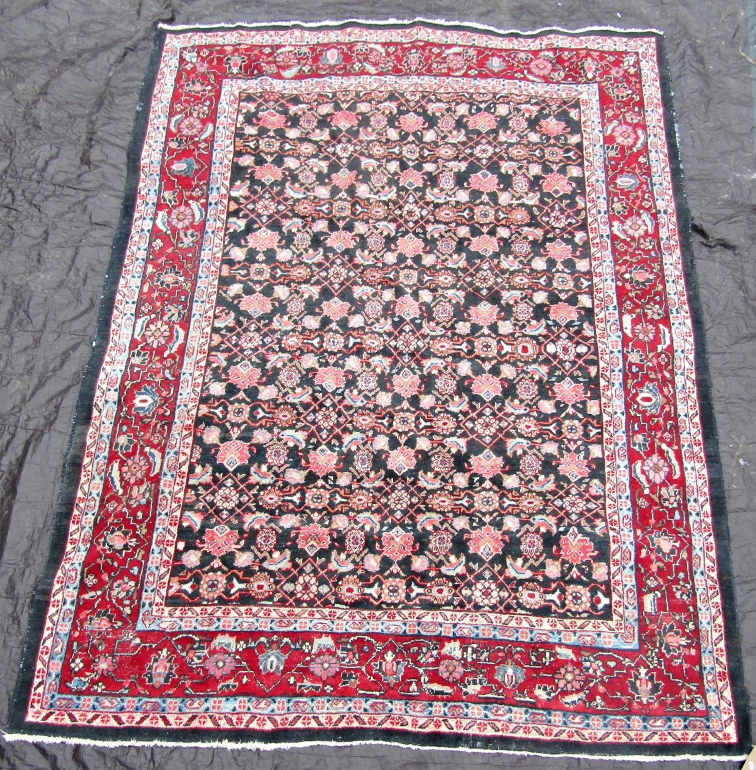 A large Persian design carpet with overall stylised floral pattern on a blue ground, 325 x 250cm