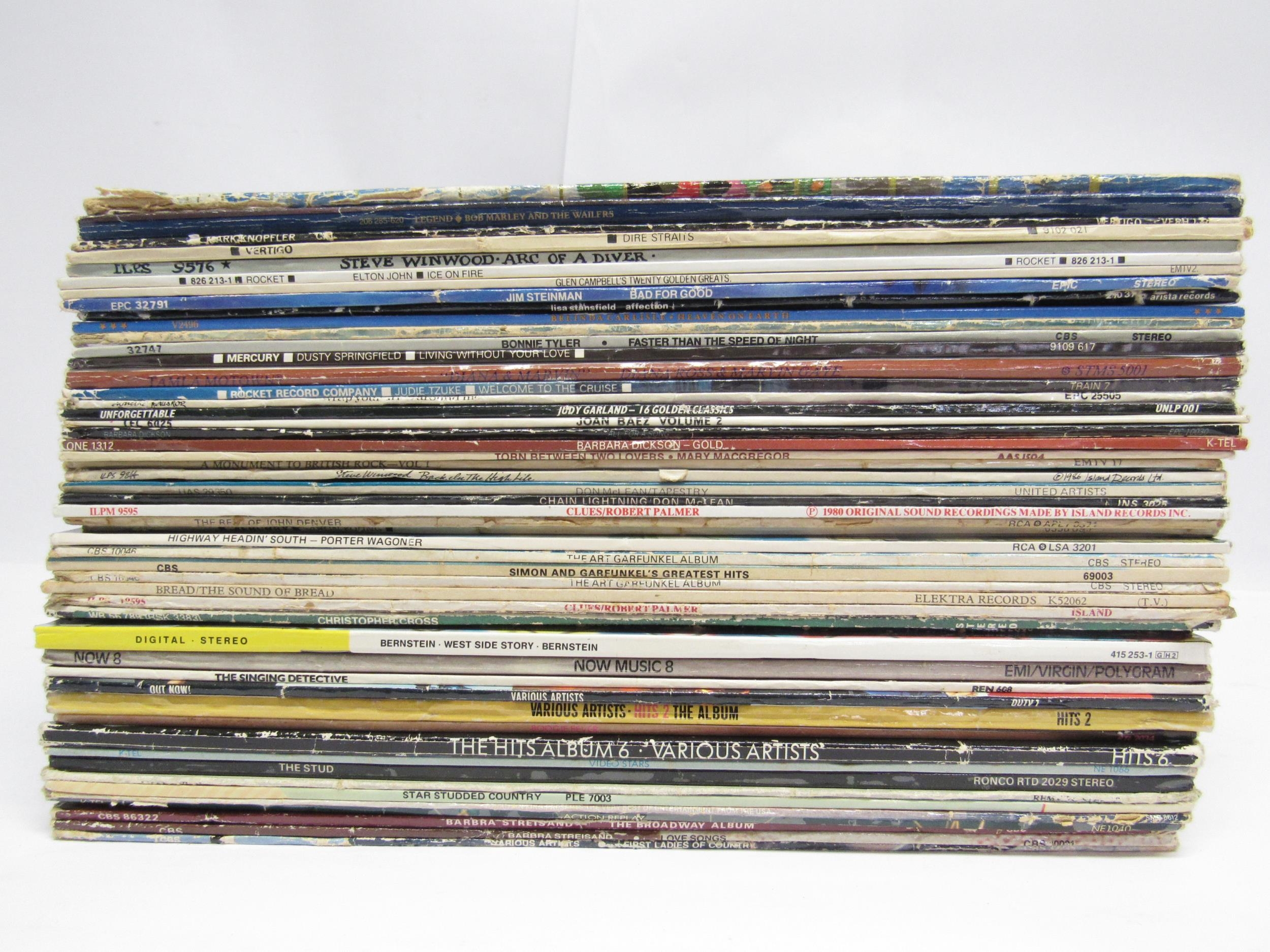 A collection of approximately fifty assorted LPs including Prince, Dire Straits, Mark Knopfler, Elton John, Jim Steinman, Lisa Stansfield, Dusty Springfield, Diana Ross & Marvin Gaye, Judie Tzuke, Bonnie Tyler, Steve Winwood, Robert Palmer, Simon & Garfunkel, Christopher Cross, compilations etc. (approx. 50, vinyl and sleeves generally VG-VG+ with a few dropping slightly under)