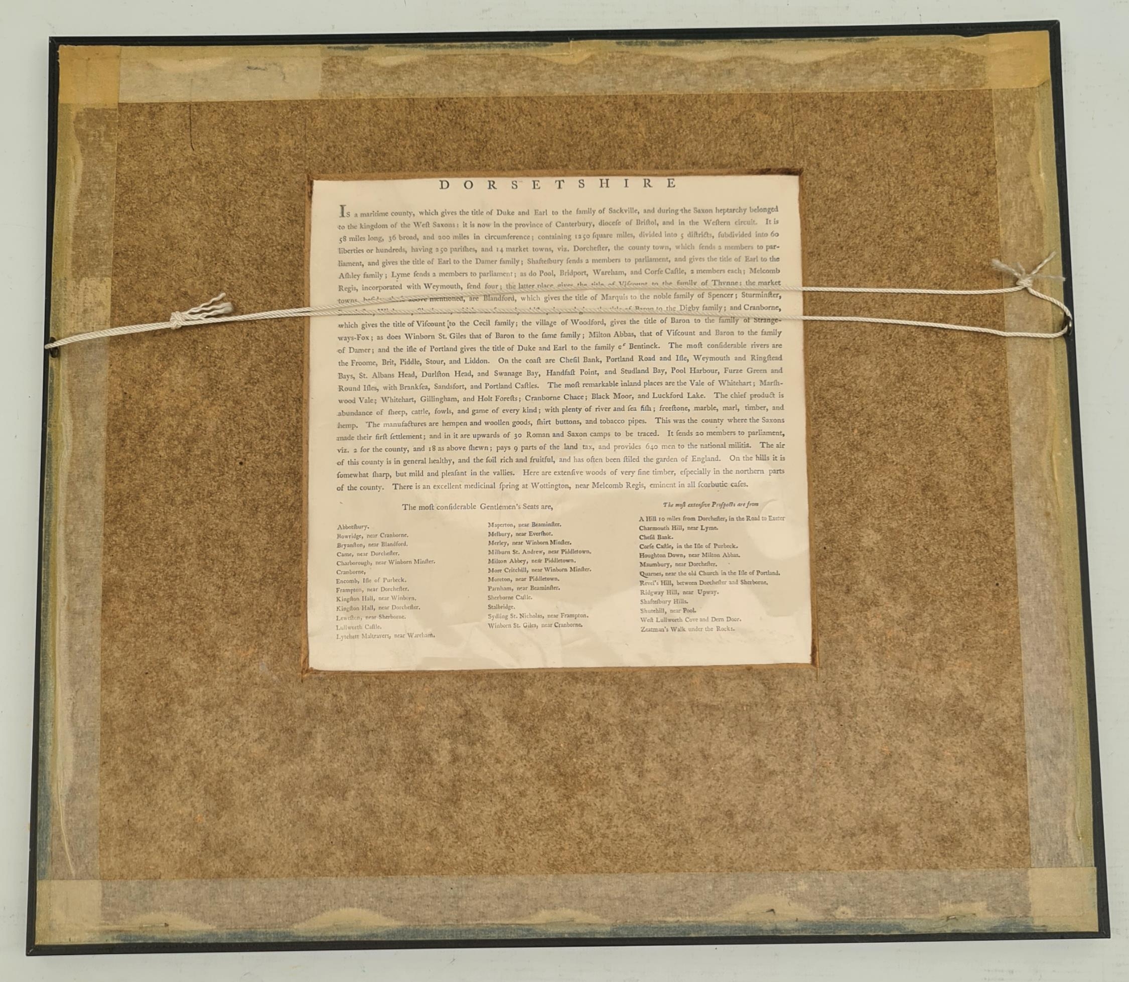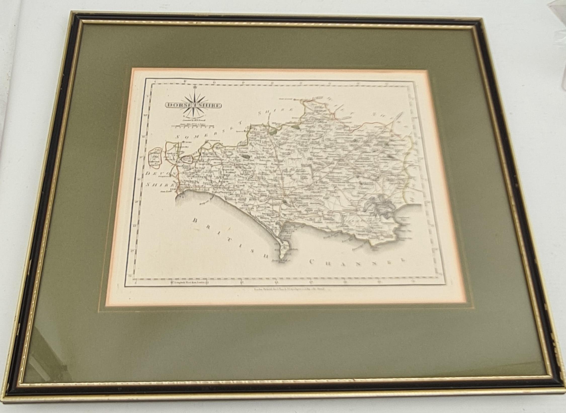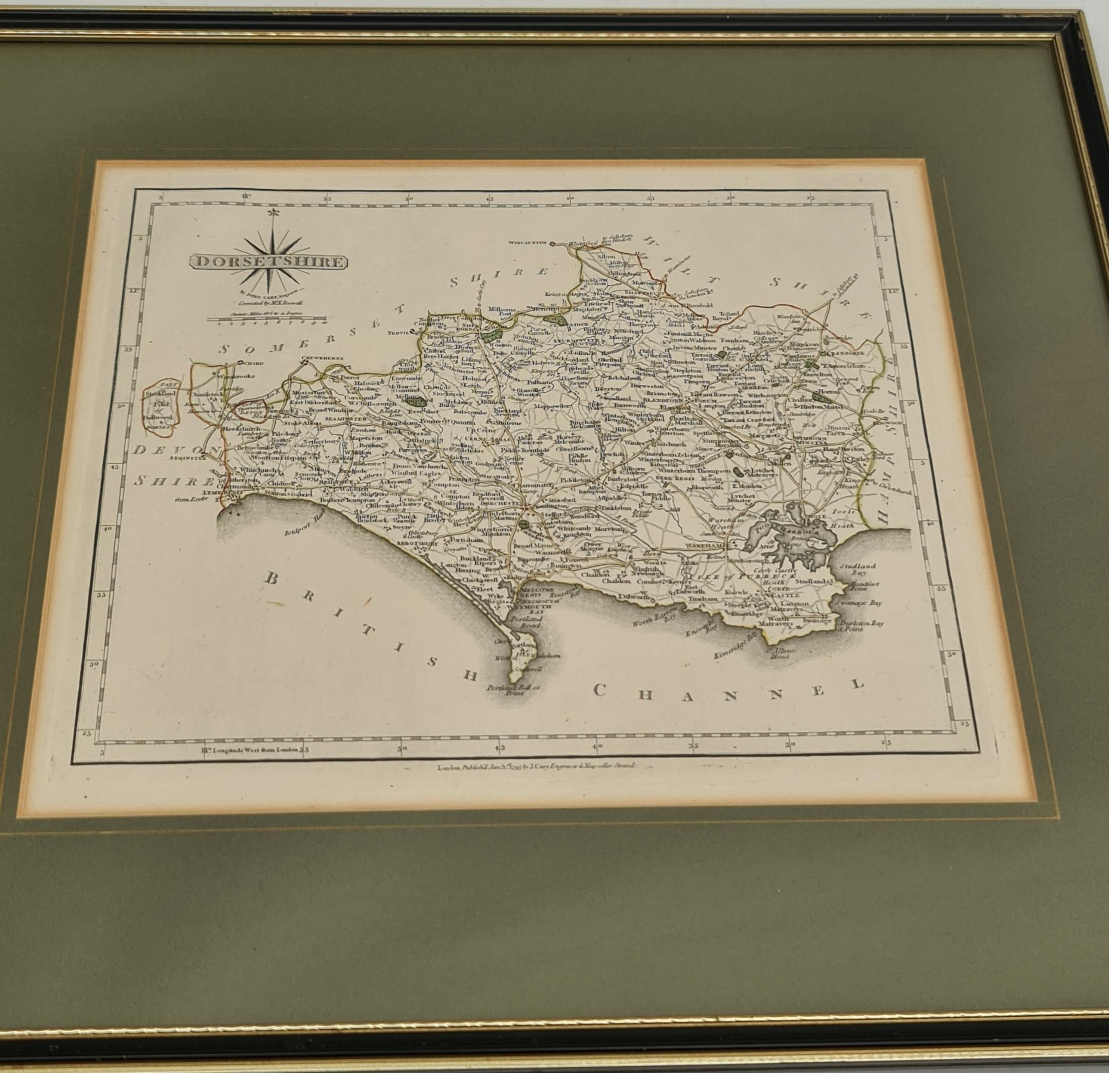 Antique Framed Engrave Printed and Coloured Map of Dorsetshire by J Carey Engraver. Believed to be from late 1700's to early 1800's. Possibly a plate from a book of that period. Overall Size 42cm by 38cm. Shipping is available. Please ask for a quote before bidding. Where possible we combine shipping costs. Remember, if you are the highest bidder above reserve on this Lot you have bought the item and are legally responsible for the item. Viewing is recommended in either person or via video link. Contact us to arrange.