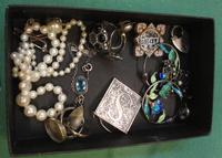 Silver & White Metal Jewellery inc. earrings, necklaces, bracelets, jade gold filled earrings & matching necklace, semi precious stone necklaces with silver clasp etc.