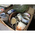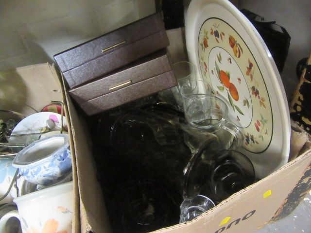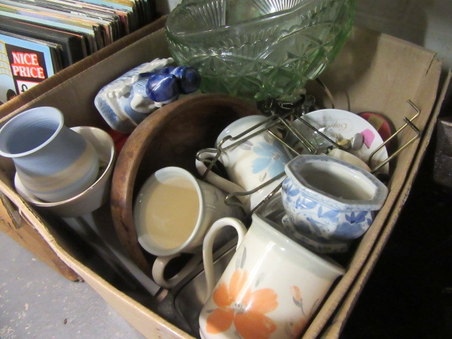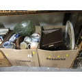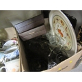 BOX OF MISCELLANEOUS ITEMS AND A BOX OF GLASS INCLUDING WEBB CRYSTAL