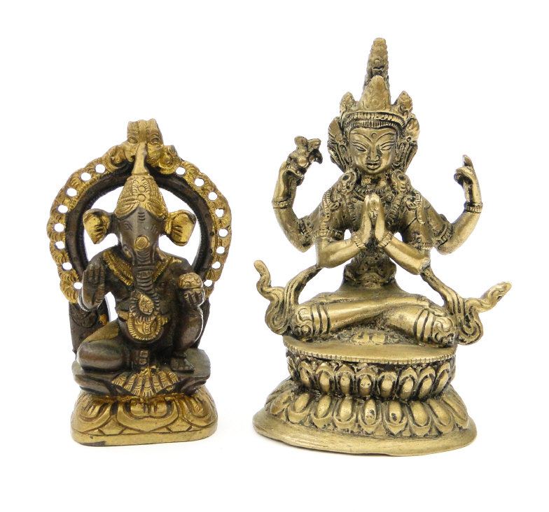 Far Eastern bronze study of a Ganesh and a similar figural deity, the larger 12cm high
