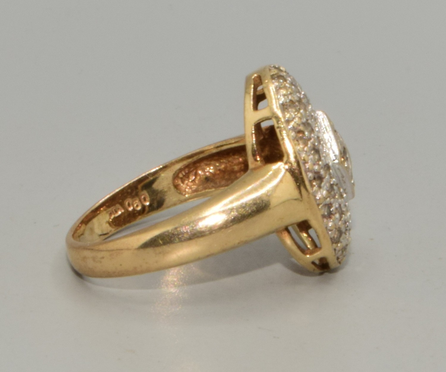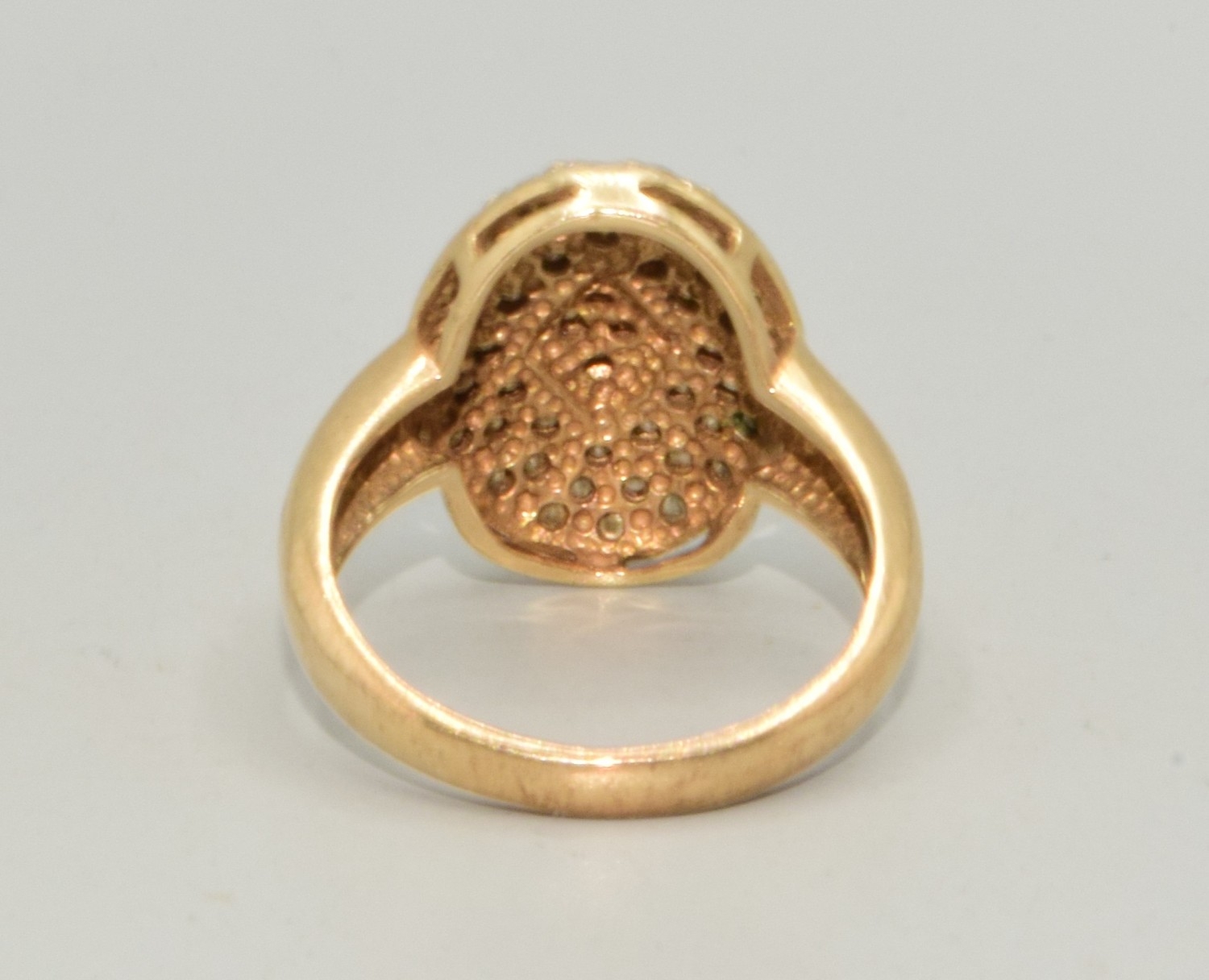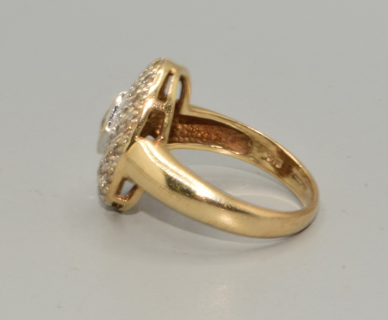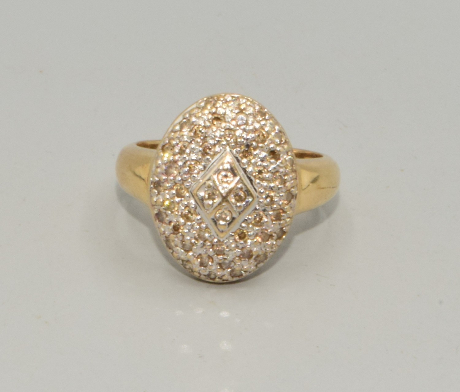 9ct gold ladies Diamond oval shape cushion ring hall marked as diamond in the ring size O, 5.1grams