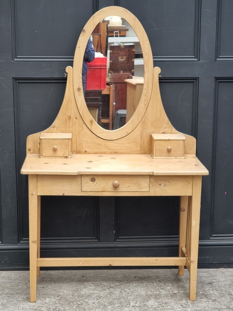 A Victorian pine mirror back dressing table, 99.5cm wide.
