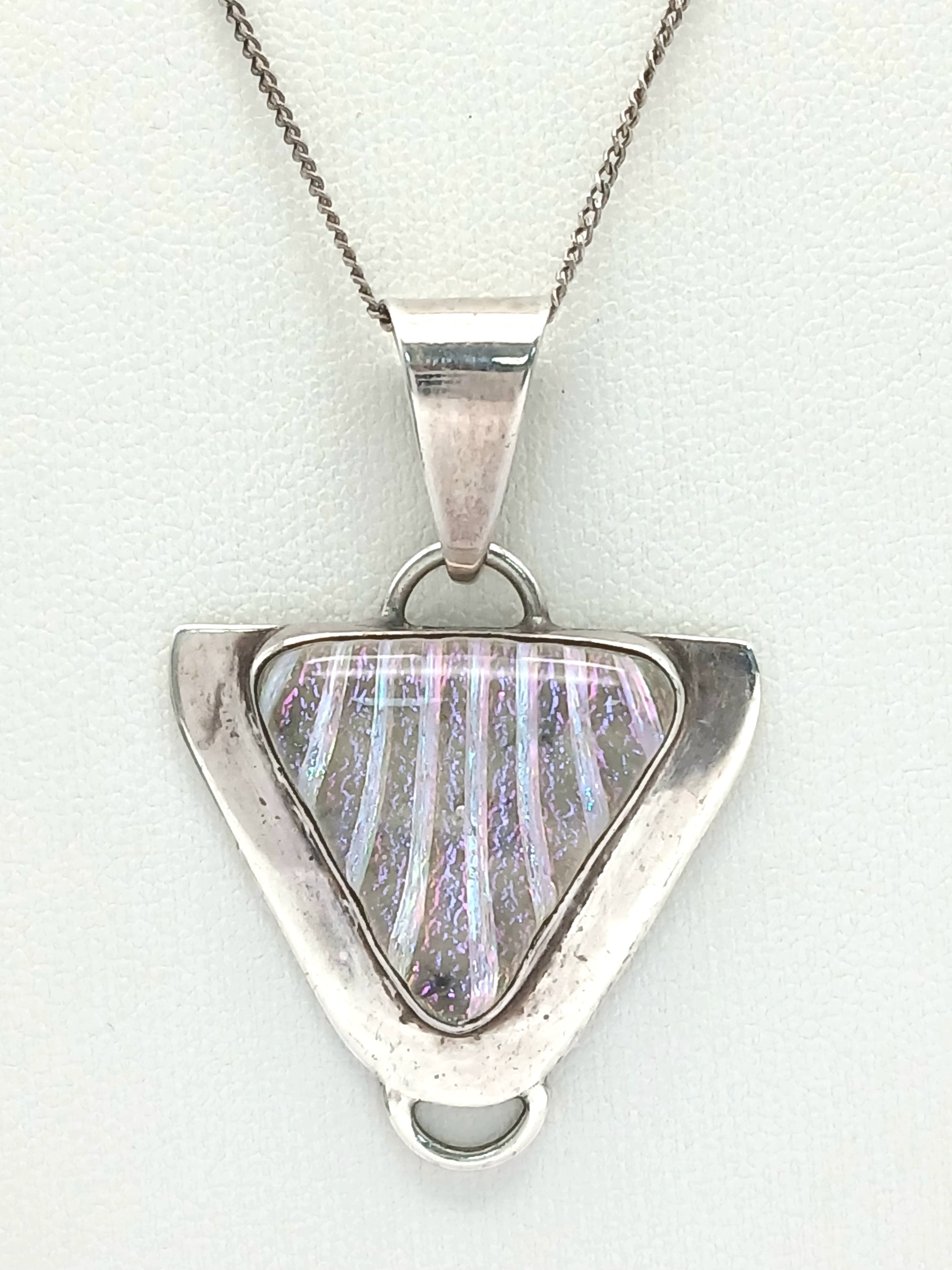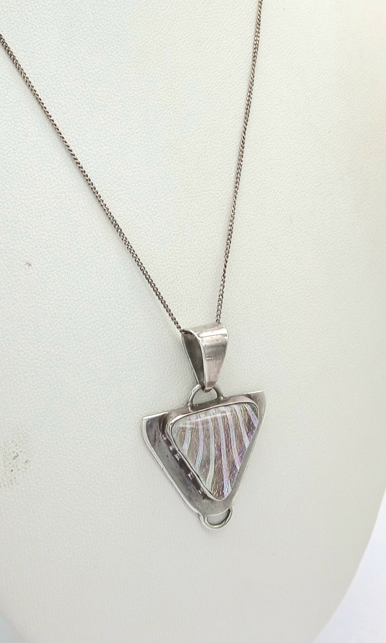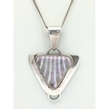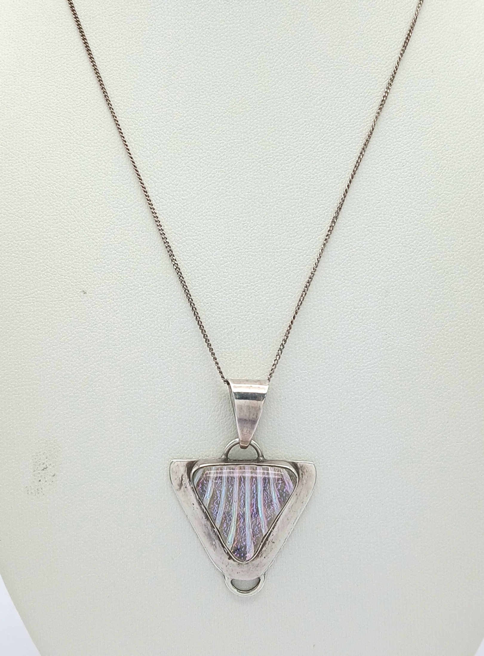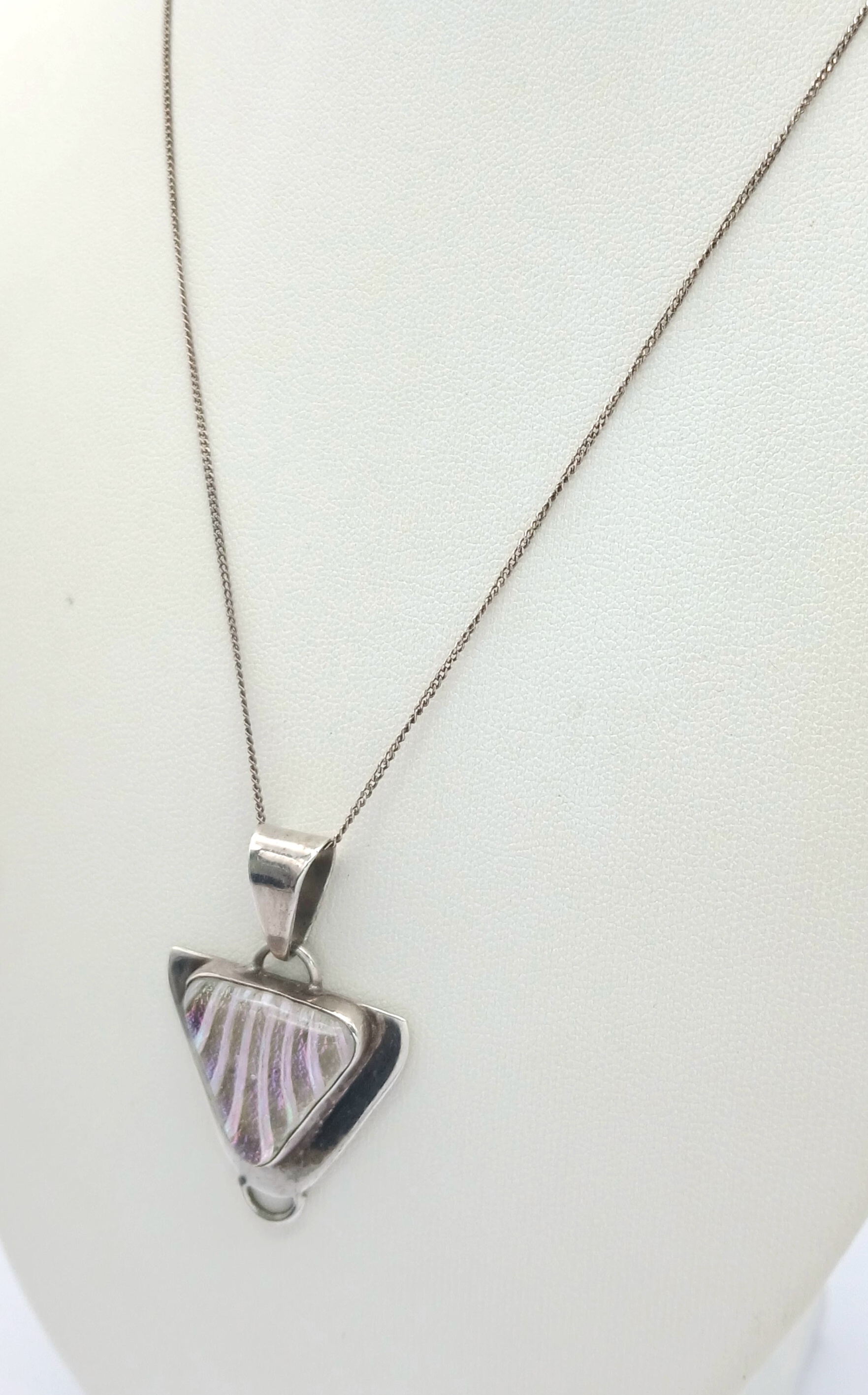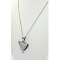 A Sterling Silver Triangular Pendant Necklace. Both Pendant and Necklace are Hallmarked 925. Approximate Length of A Necklace 45cm, Pendant 4cm. Total Weight 9 Grams.