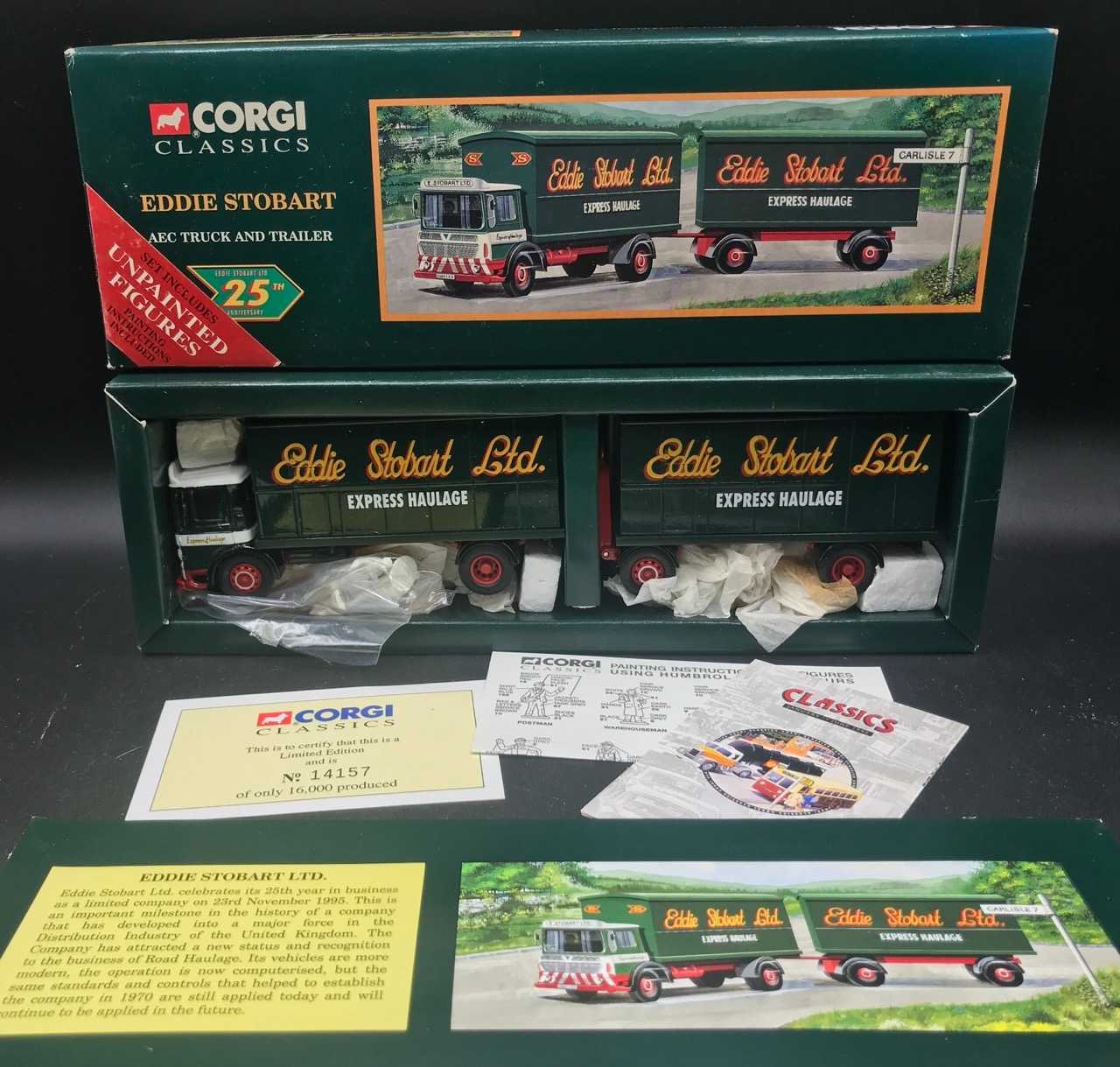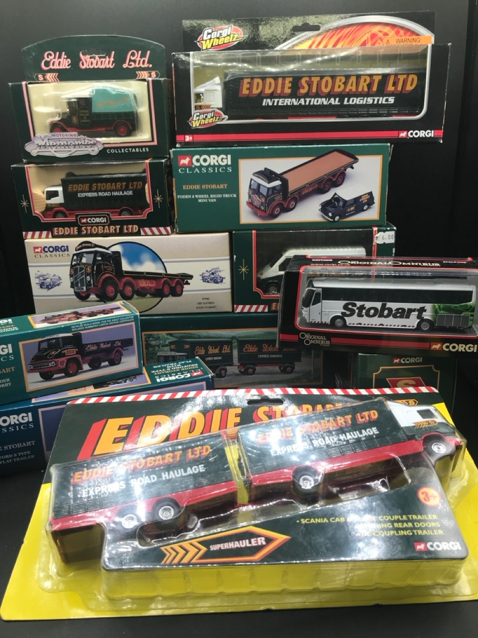 12 Corgi Eddie Stobart Die-cast Vehicles, Undisturbed from Packaging, Boxes overall Good with some signs of storage wear and some discolouration to some and general dust - Die-cast Excellent, Boxes Good (12) 4700g