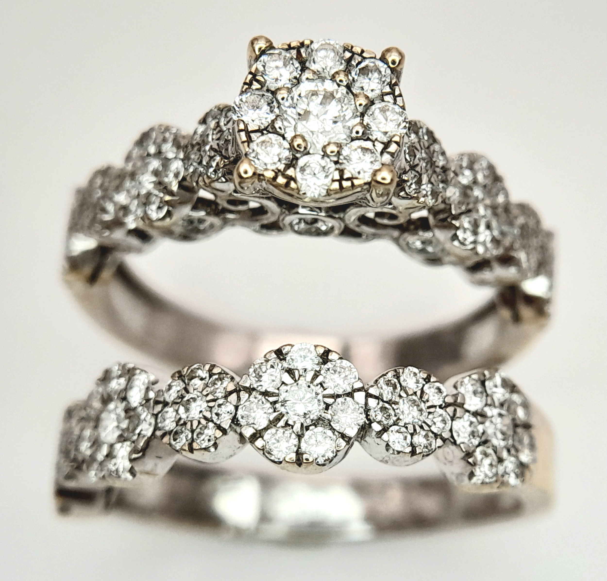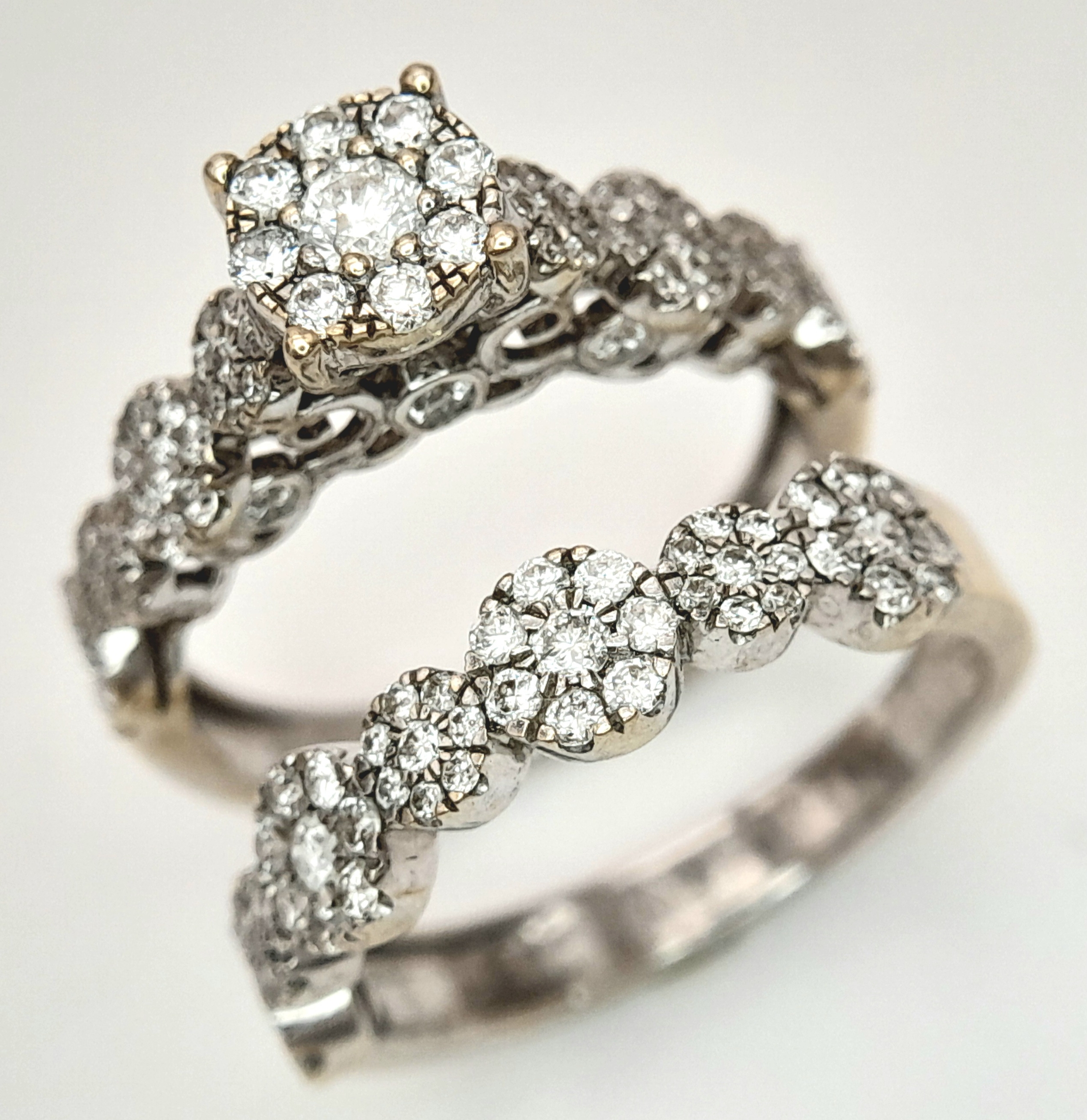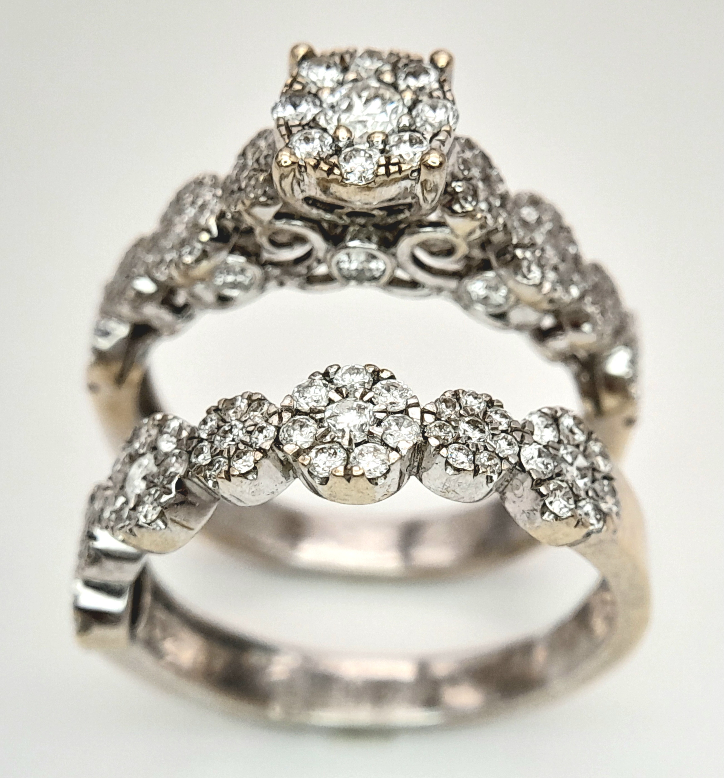 Two 18K White Gold and Diamond Cluster Rings. Both size J.