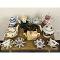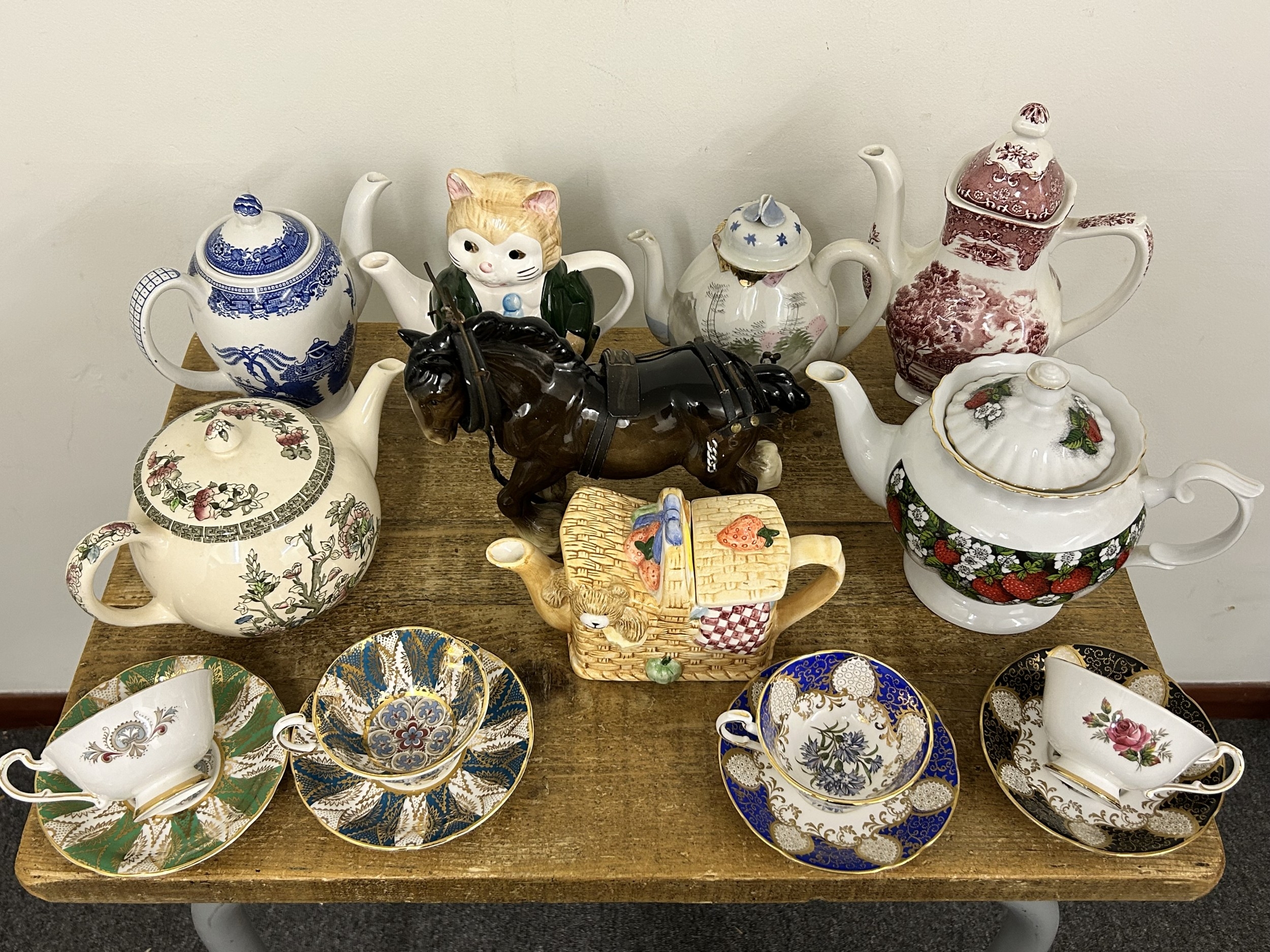 Various ceramic teapots together with a ceramic horse and four Paragon cups and saucers