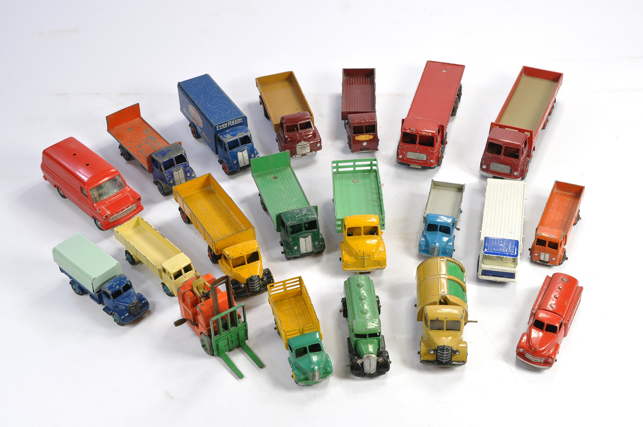 An attractive group of Dinky diecast commercial issues as shown. Includes some code 3 repaints. Otherwise most generally playworn but some with lesser signs of wear.