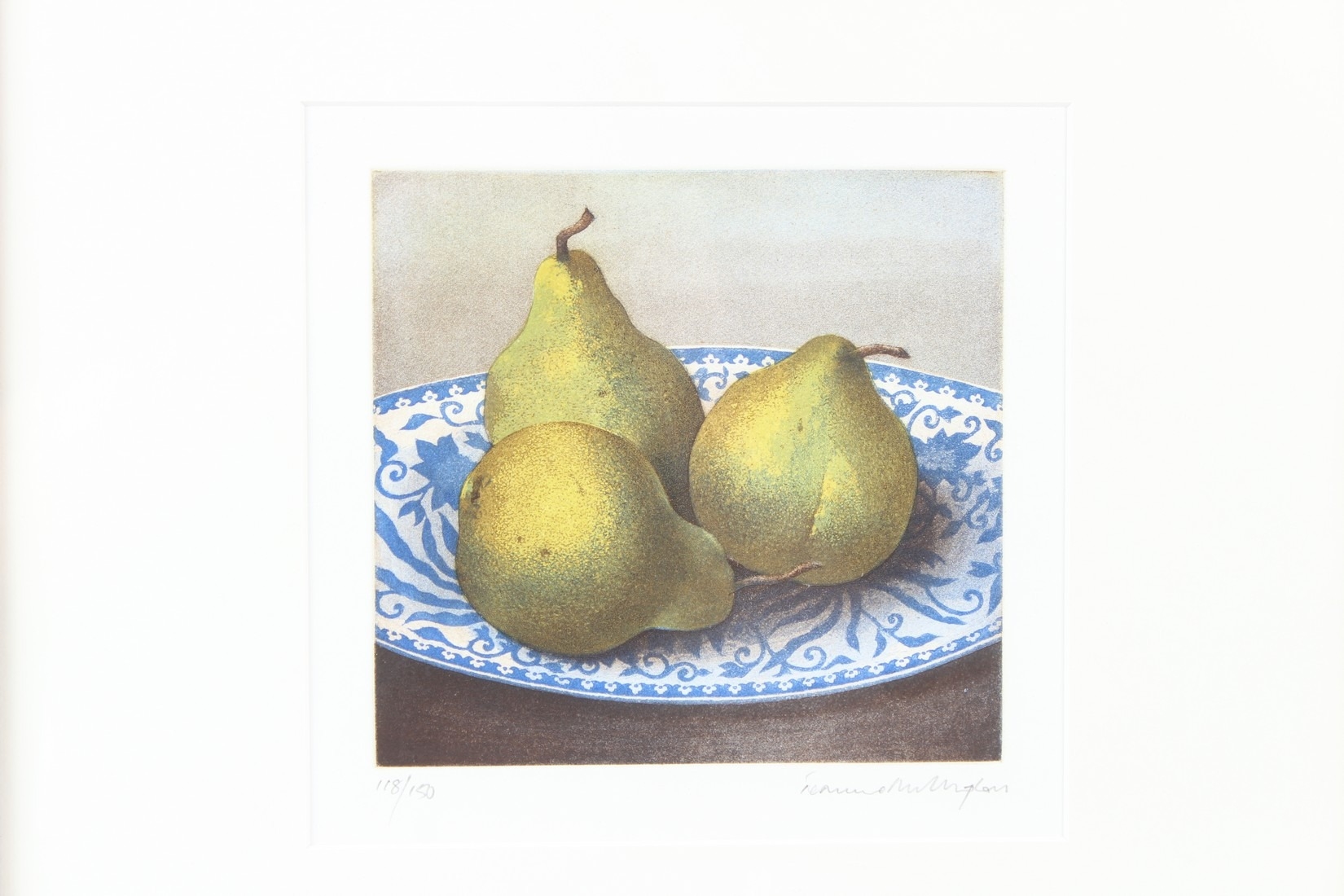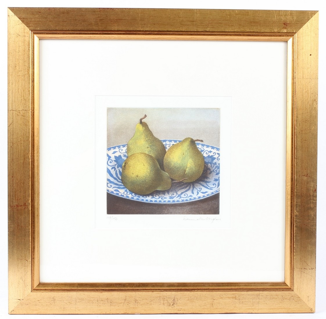 TERENCE MILLINGTON 'Pears on plate' colour print 118/150 signed in pencil 16.5 x 17.5cm