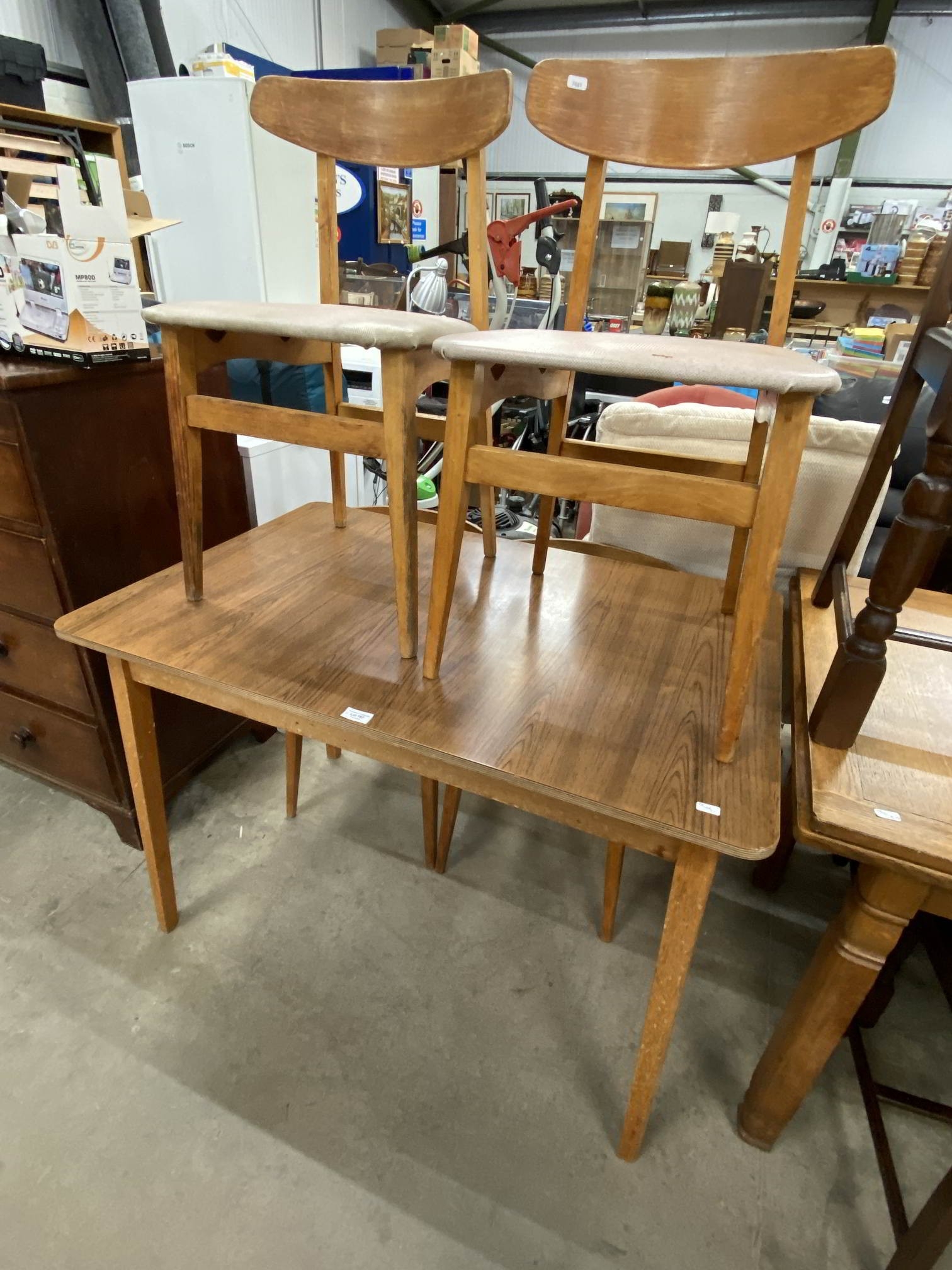 Mid century Formica topped table 76H 106W 71D with 4 chairs