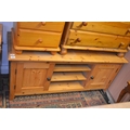 Stripped pine 2 door media cabinet. H60cm W140cm