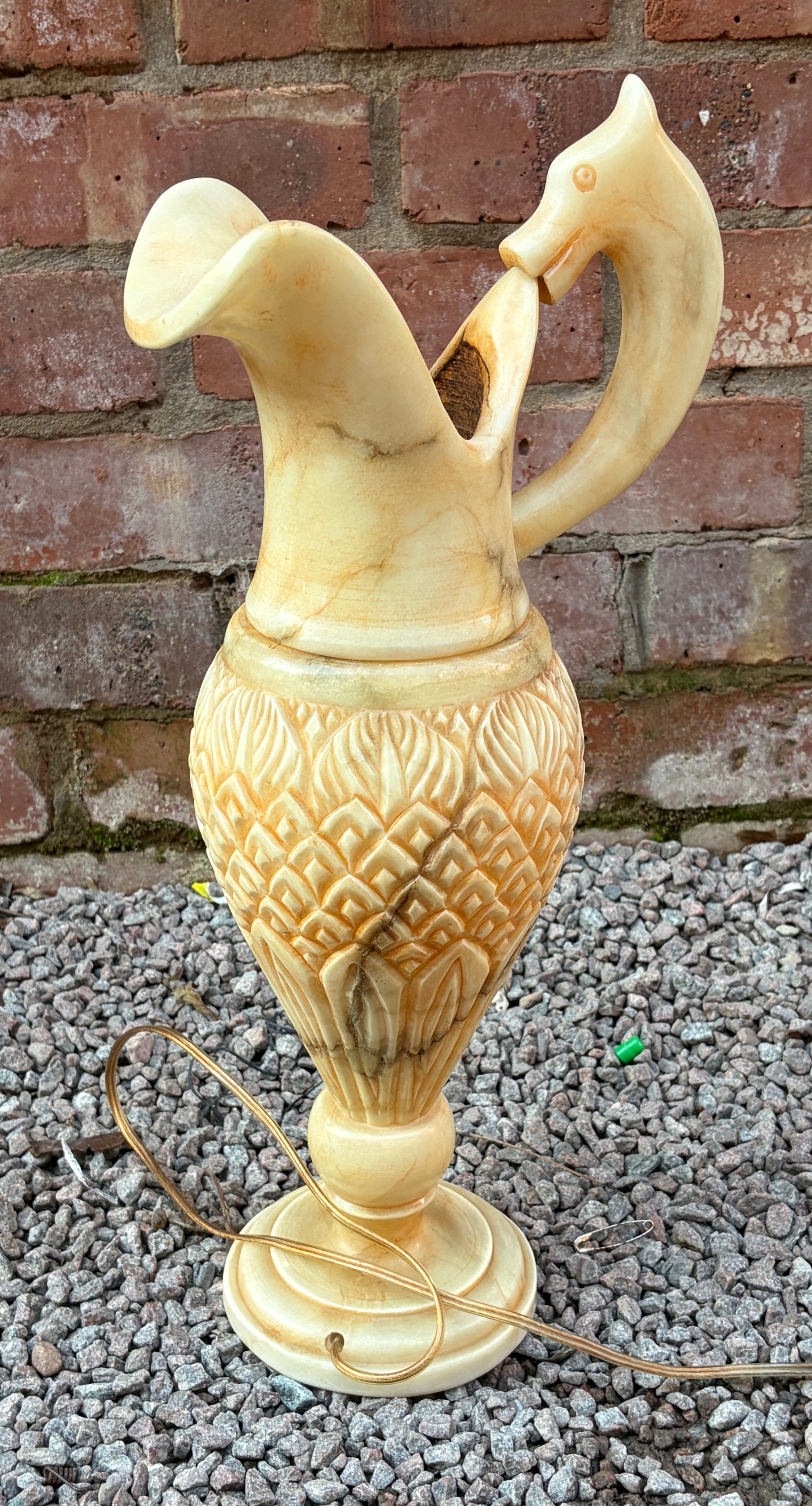 CARVED CREAM ROSE ALABASTER BULBOUS EWER