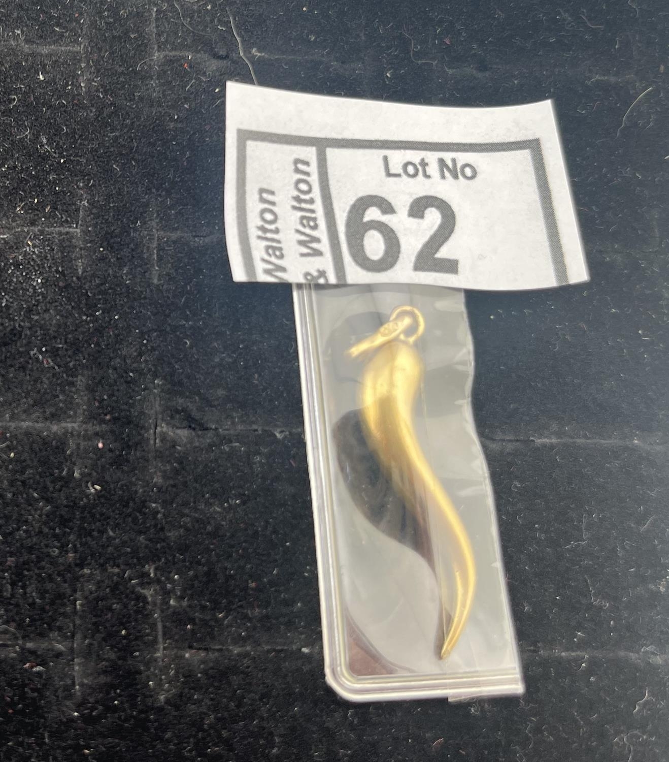 1.5" 9ct Gold cornicello pendant, 1.4g - Only 10% buyer's premium