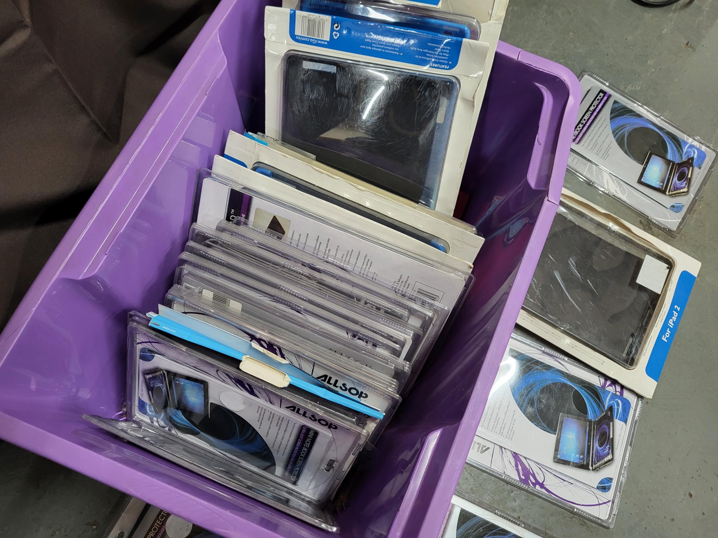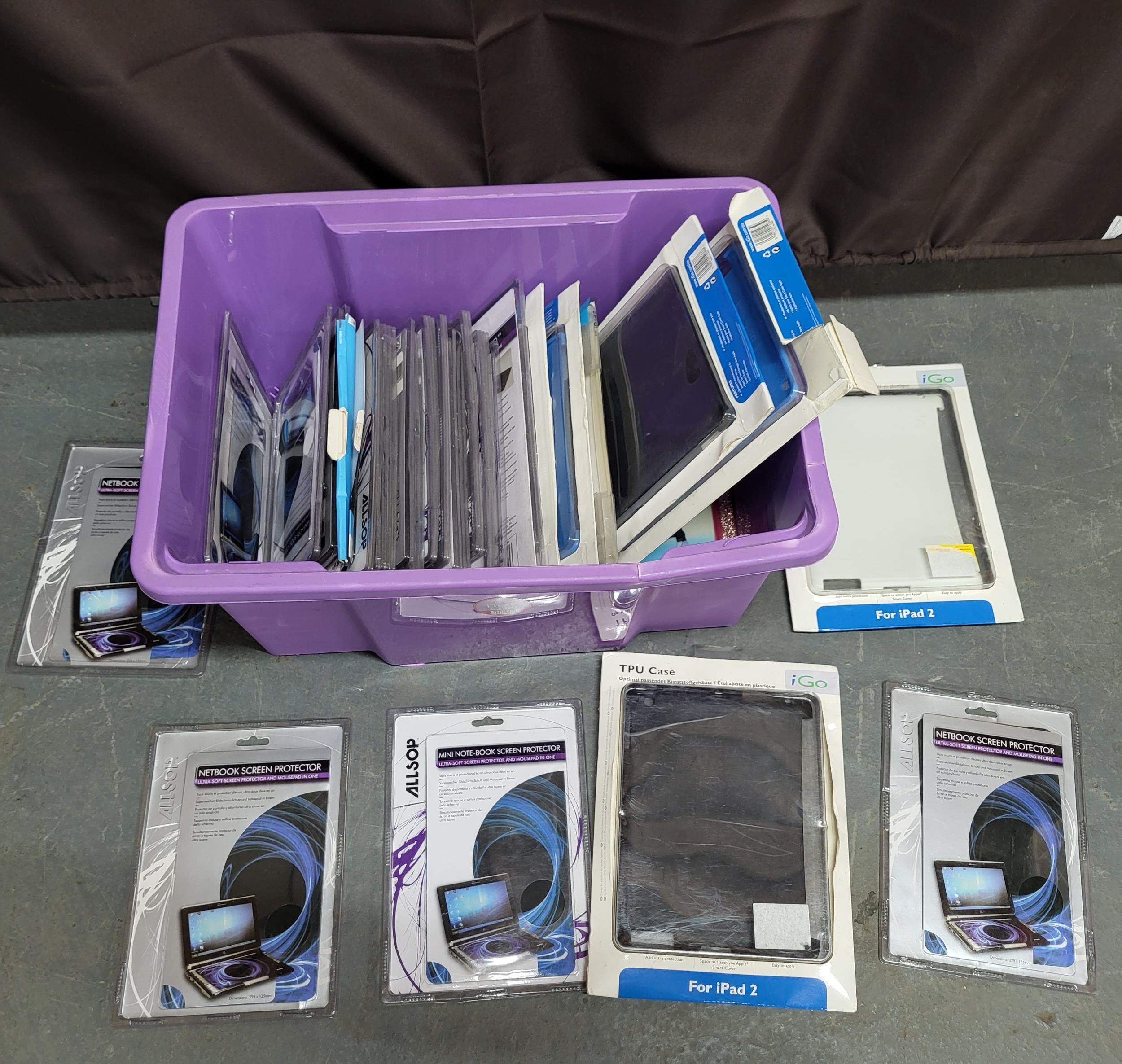 Box of various ipad covers and NoteBook screen protectors (Qty)