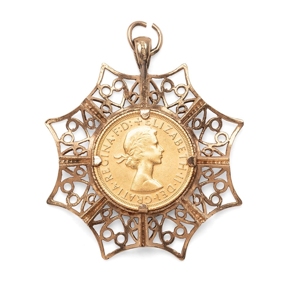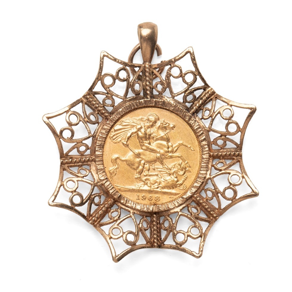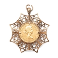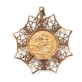 An Elizabeth II full sovereign, 1968, in 9ct gold scroll and wave star pendant mount, total weight 15.0g.