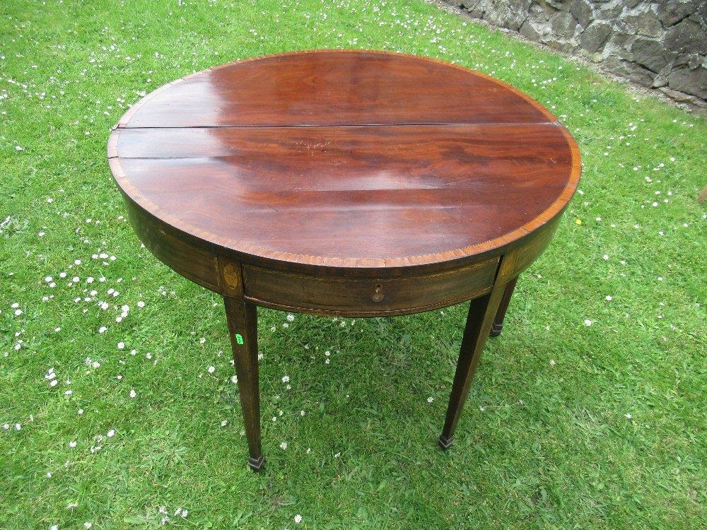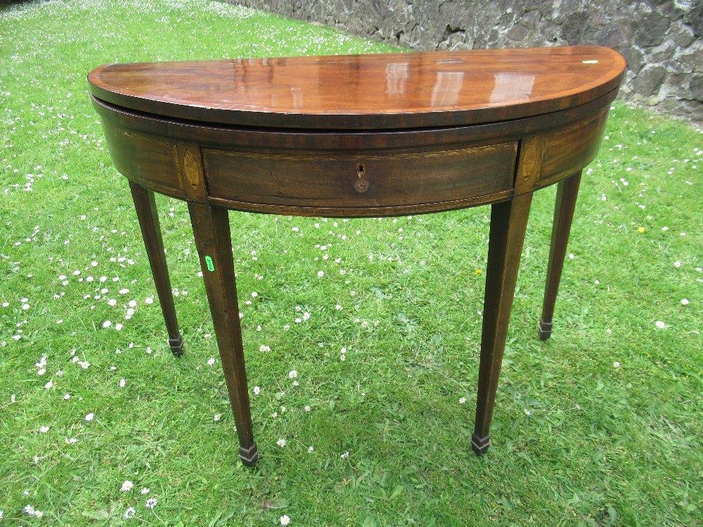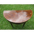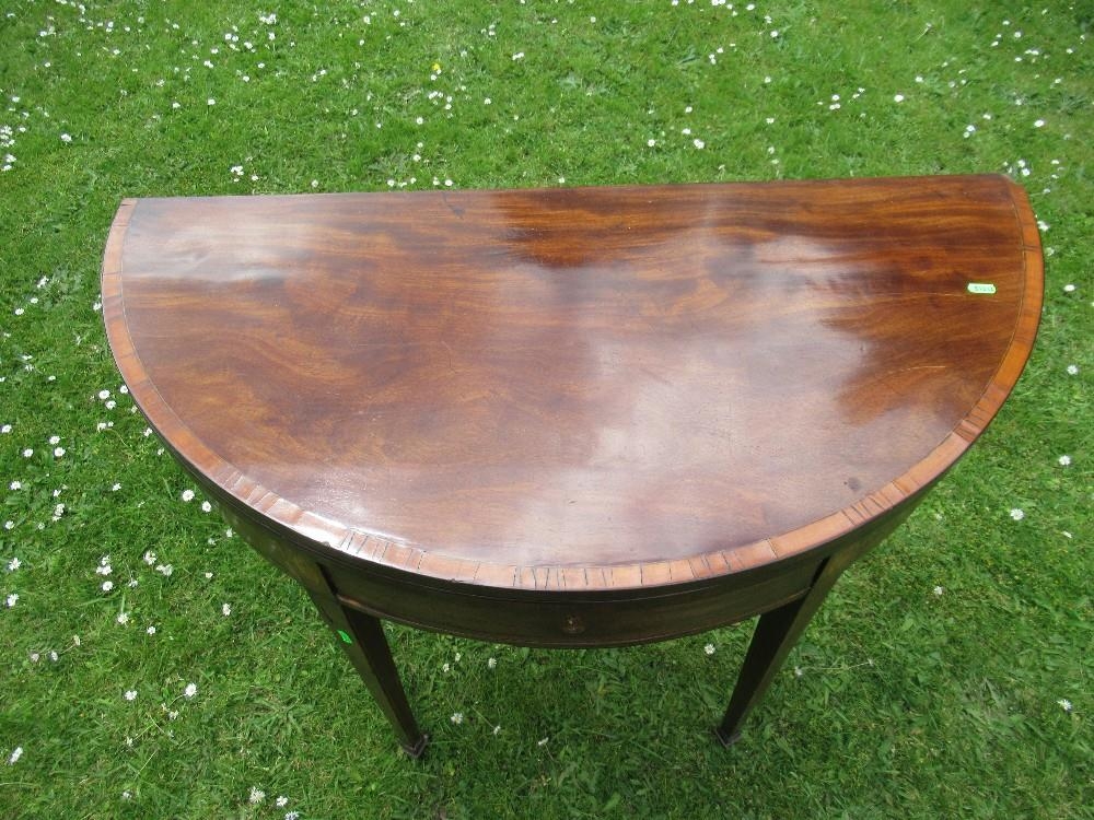 A late Georgian mahogany half round fold over tea table diameter 40ins