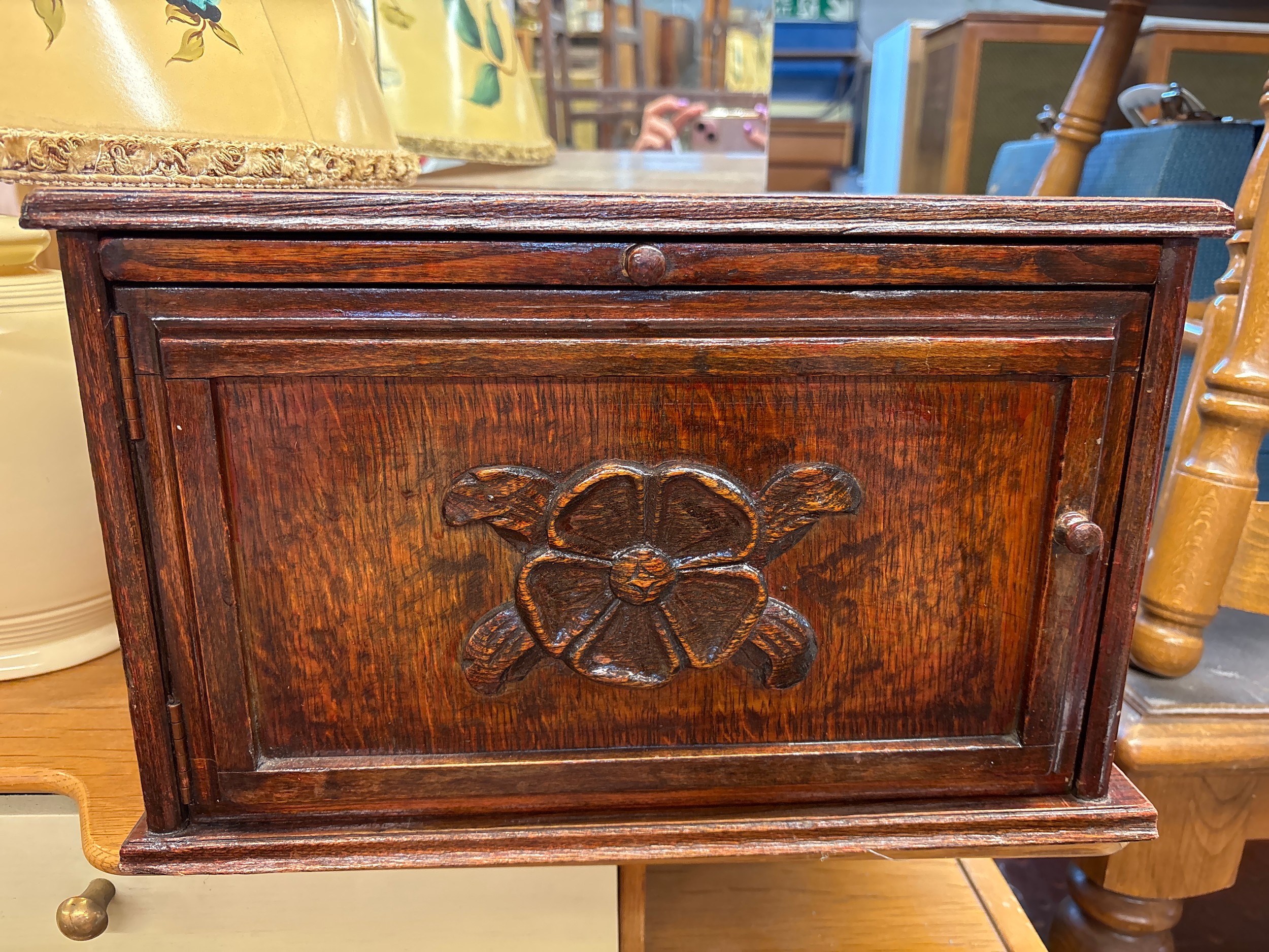 OAK TUDOR ROSE PANEL DOOR BOX WITH SLIDE