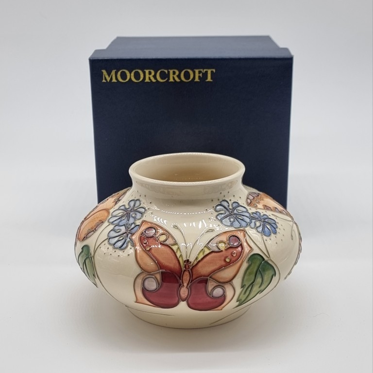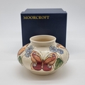 A Moorcroft 'Butterfly' pattern vase, by Sally Tuffin, 11.5cm high, boxed, (minor crazing).