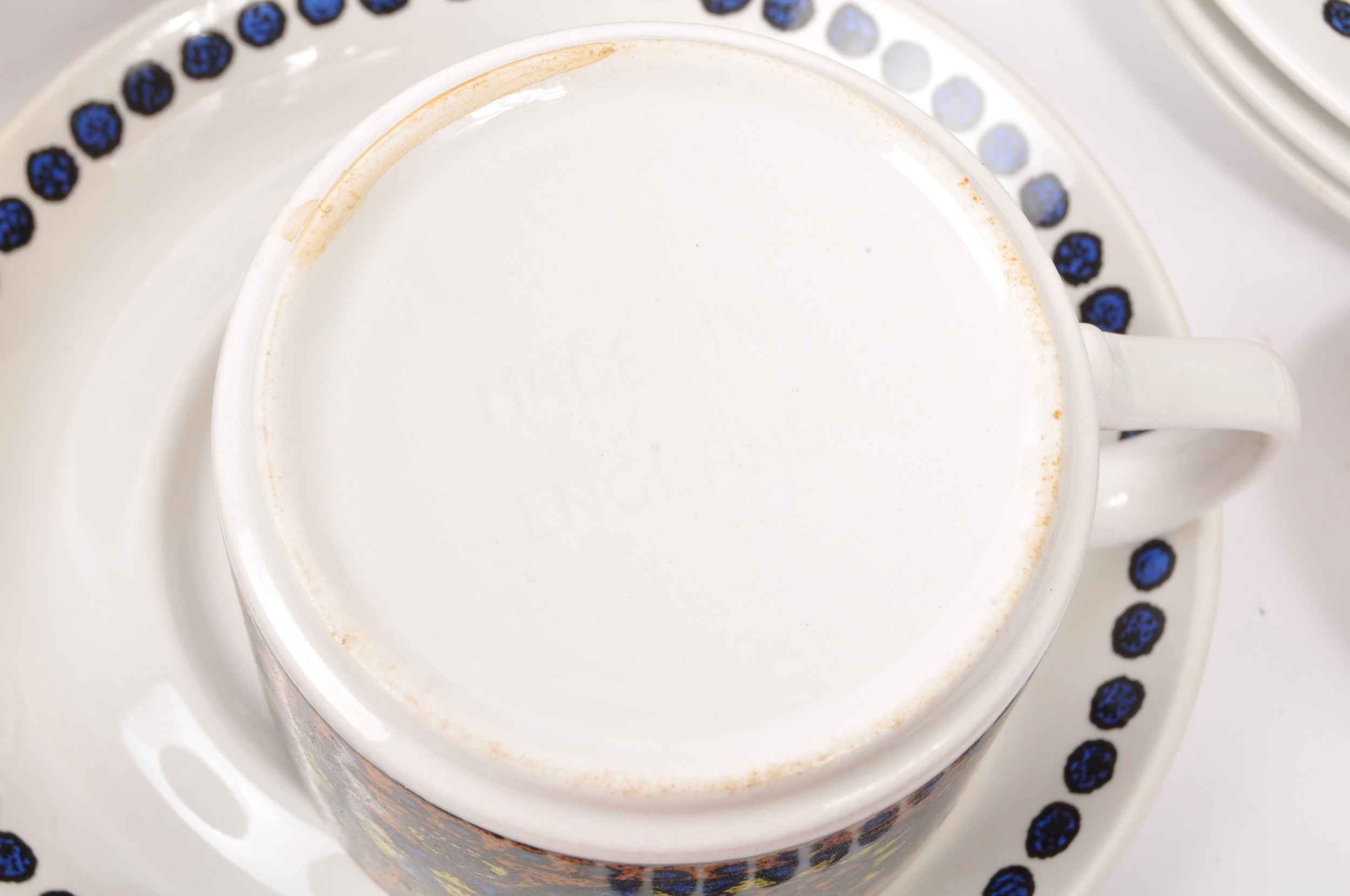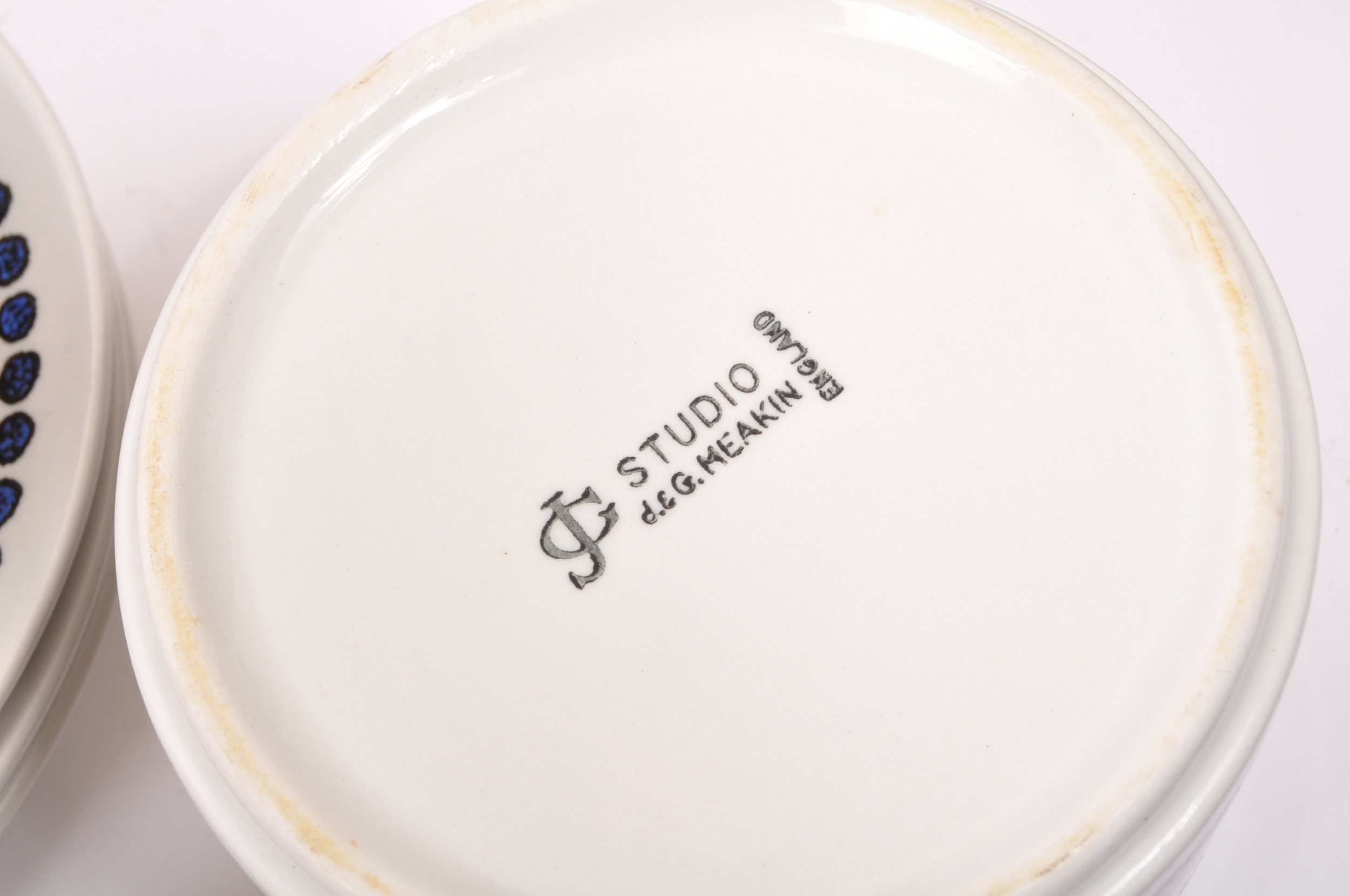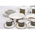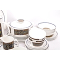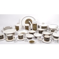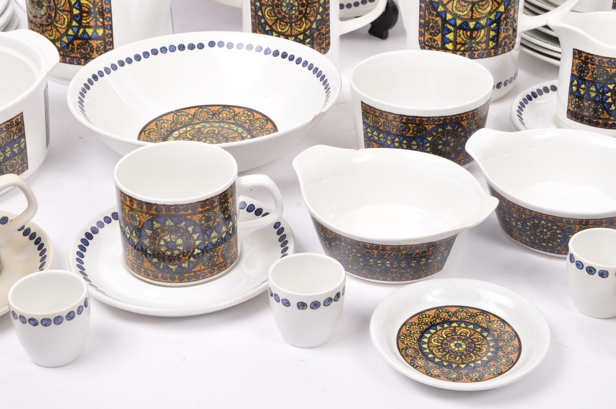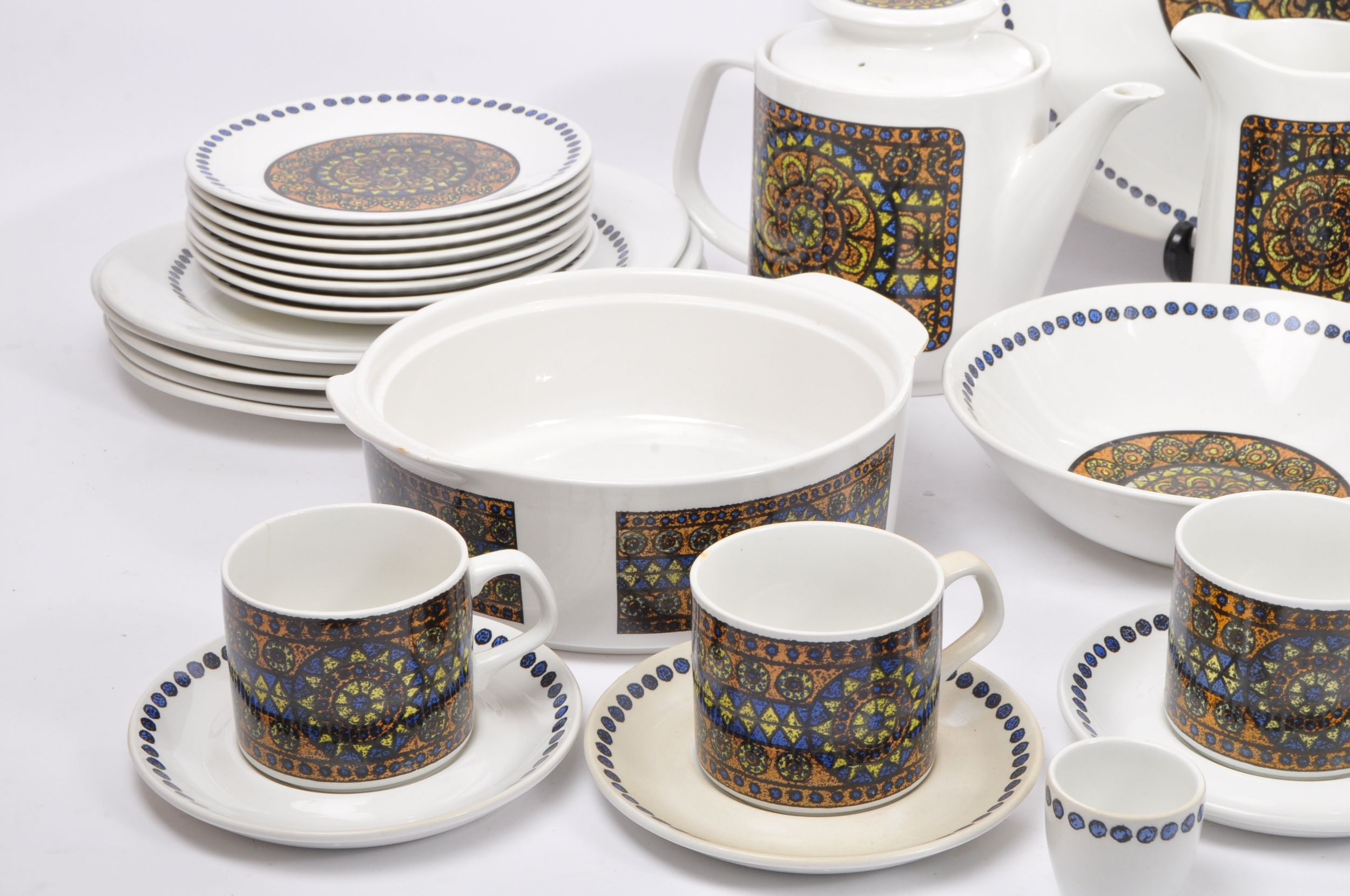 A J&G Meakin, Staffordshire, England retro dinner & tea service in the studio pattern. The set comprising, meat platters, tureens, soup bowls, cups and saucers, , jug, dinner plates, coffee pot, teapot etc