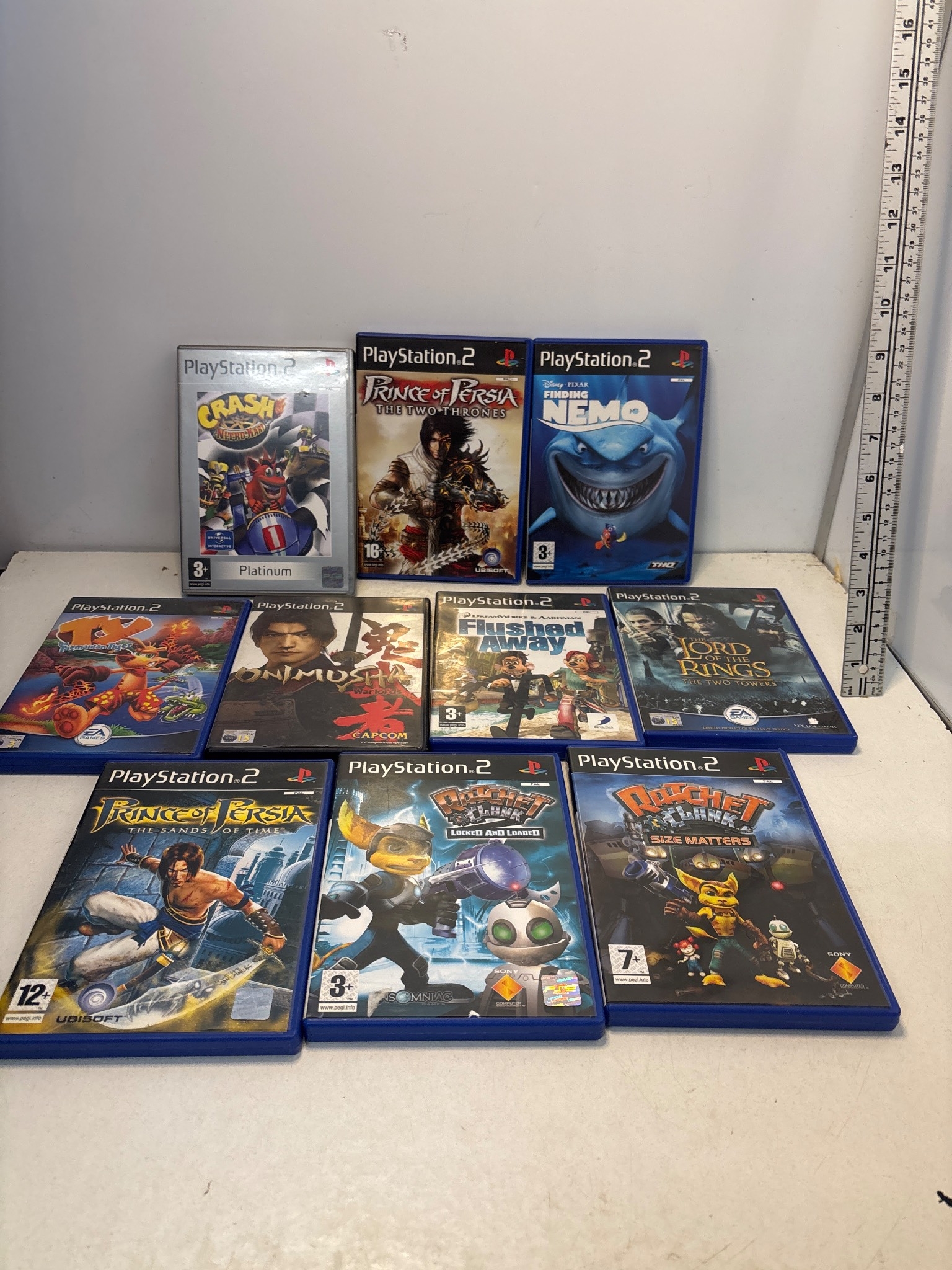 Bundle of 9 PlayStation 2 games including various titles.