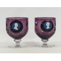 Wedgwood a pair of goblets with Jasper Cameos depicting H.R. Queen Elizabeth II & H.R. Prince Philip. Boxed (2)