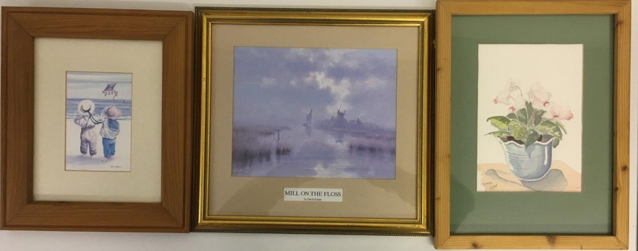 A mixed lot of a framed watercolour (signed H Thomas), together with two framed prints (David Dane - Mill on the Floss & F Whittaker - Windy Day)