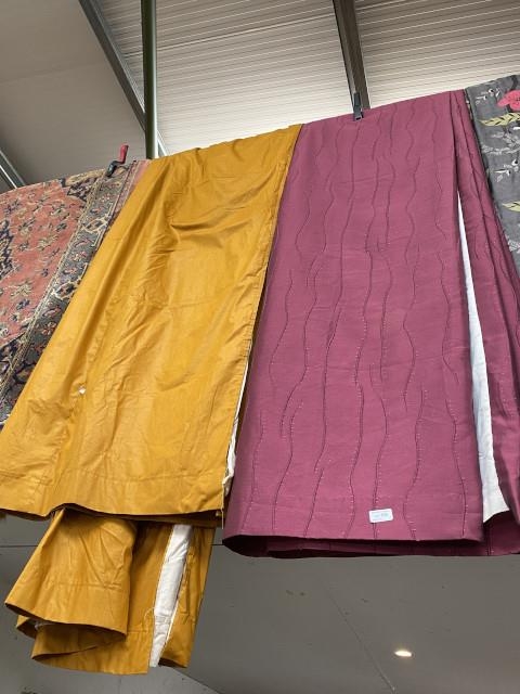 Pair of purple lined curtains (eyelets) 120 w x 240 d & a pair of mustard colour curtains 140w 240d