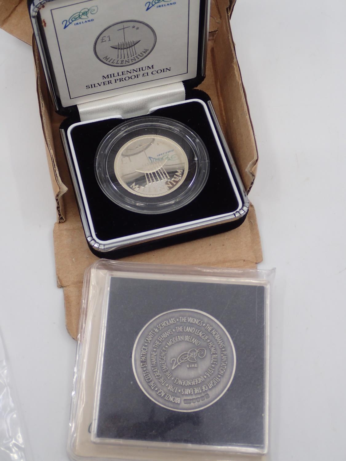 A Millennium silver £1 coin and a silver medallion