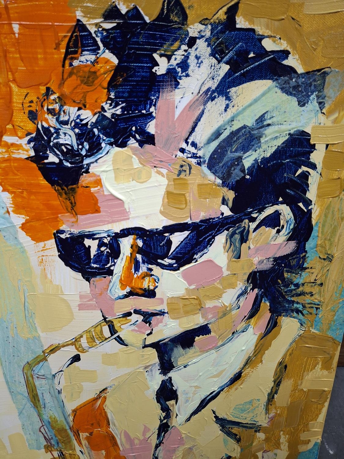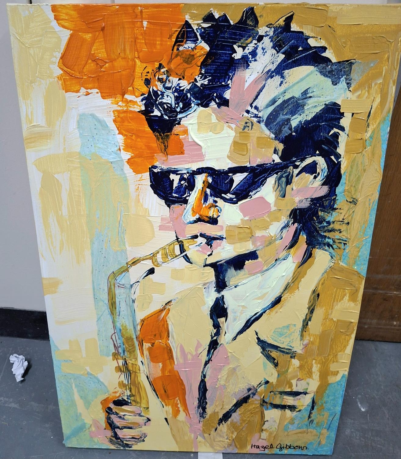 Hazel Gibbons (20-21stC) acrylic on canvas "The trombone player"
