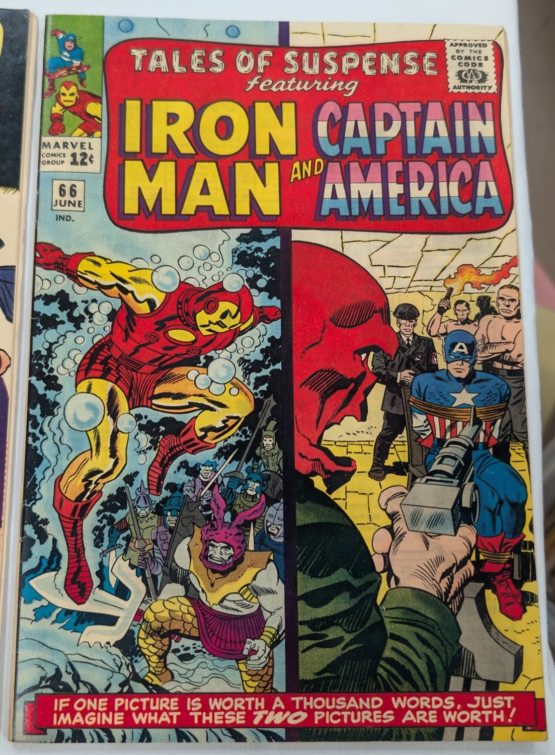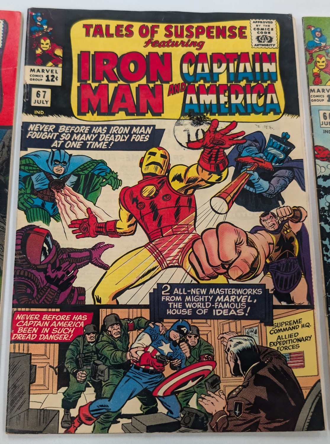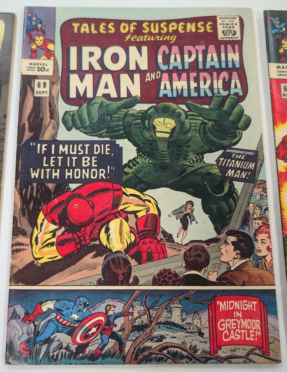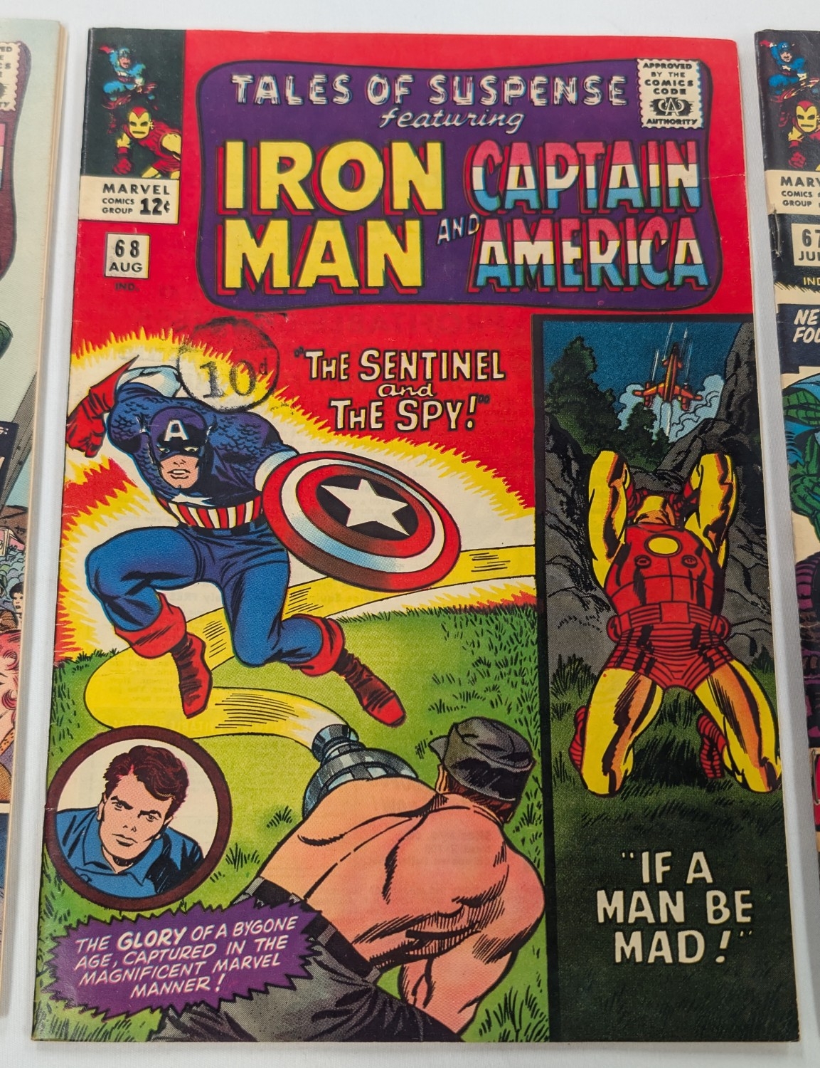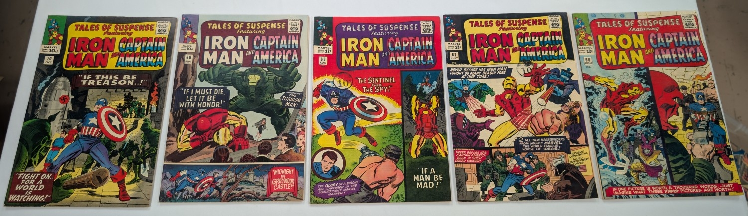 Marvel Comics: 'Tales of Suspense' #66, 67, 68, 69, 70 (1965), US & UK pricing.