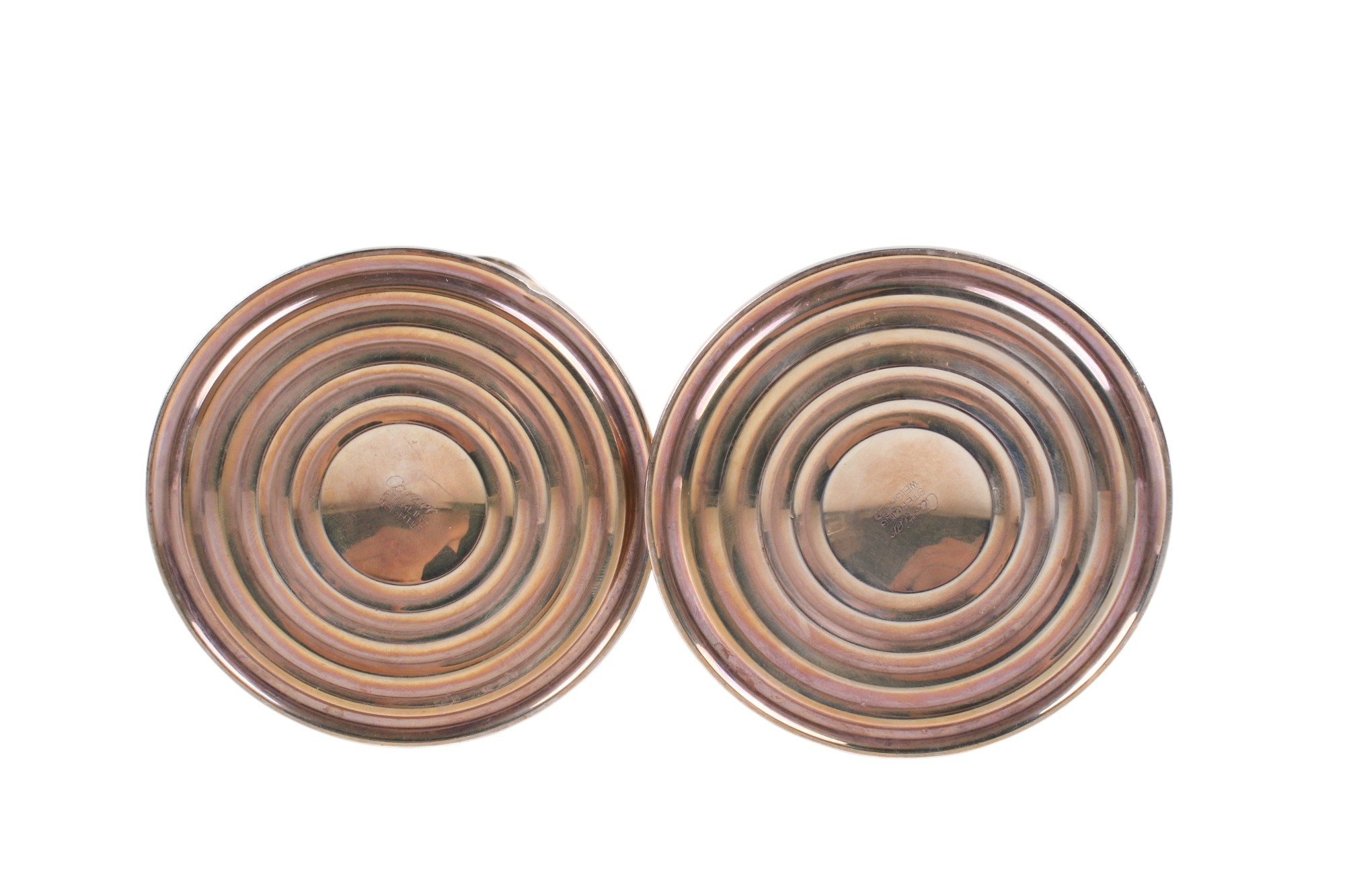 The candlesticks are overall in decent condition. Some small dents to the stepped base and rims. Signs of general wear including scratches and tarnishing (should polish out). No obvious repairs or alterations. Believed to date to the late 20th century. Approximate UK postage quote £20 plus VAT