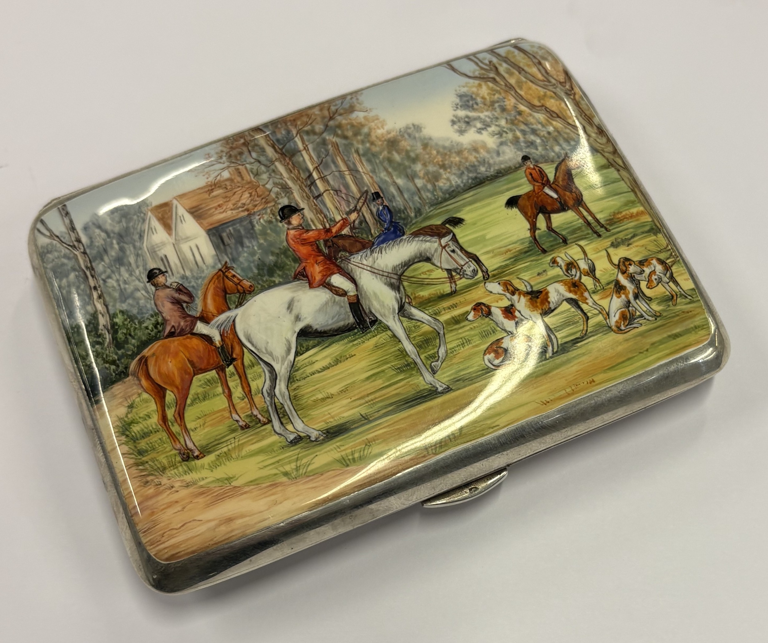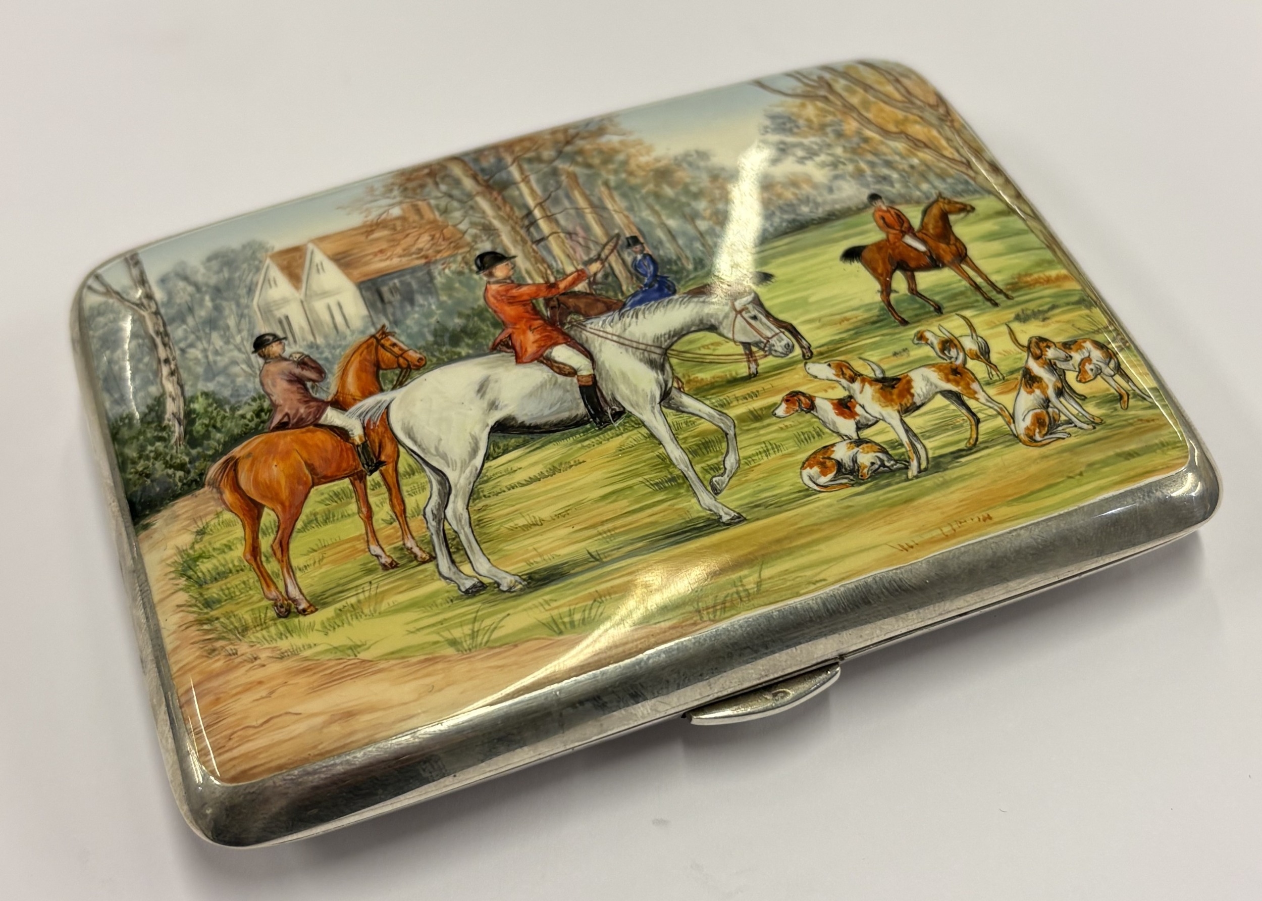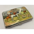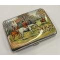 An early 20th Century silver and enamelled travelling necessaire decorated with hunting scene. Approx. 127 grams. Est. £400 - £600.